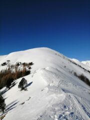 Bella cima che non avevo mai fatto innevata, io ho calzato gli attrezzi dalla passerella, salita con pendenza sostenuta per arrivare all’inizio della cresta est, valutare le condizioni del manto nevoso oggi erano perfette, cresta con neve dura ventata fatta interamente sul filo, dorsale verso la cima salita diretta sulla traccia di uno skialp, discesa per il vallone verso il gias contard, in solitaria.