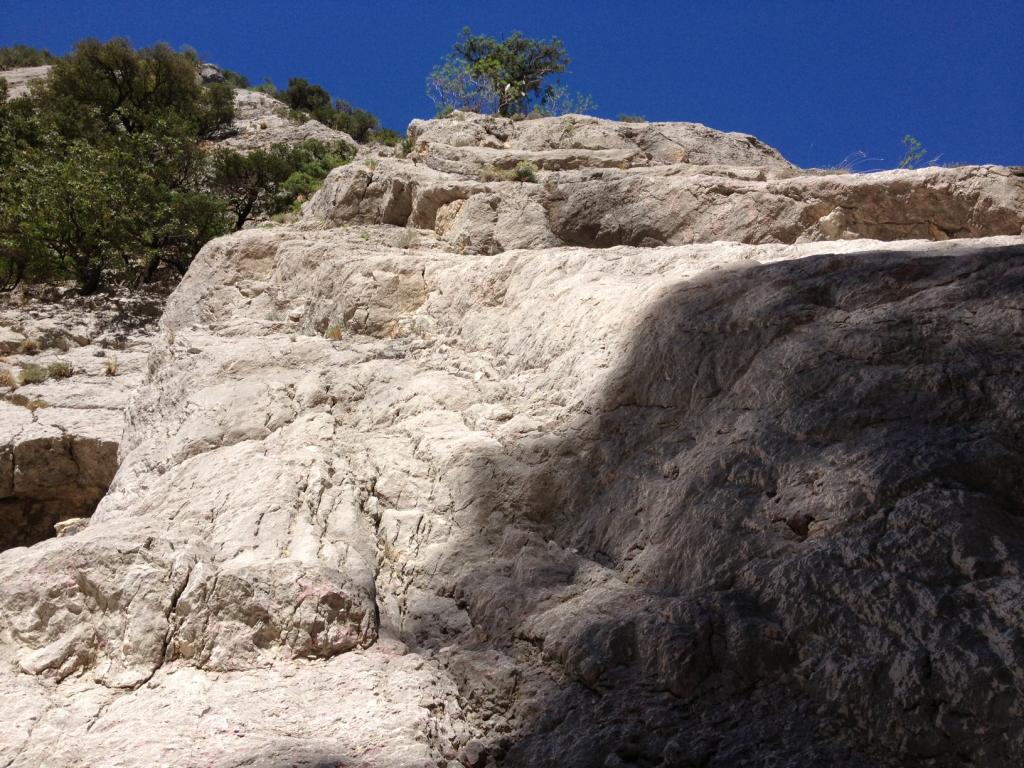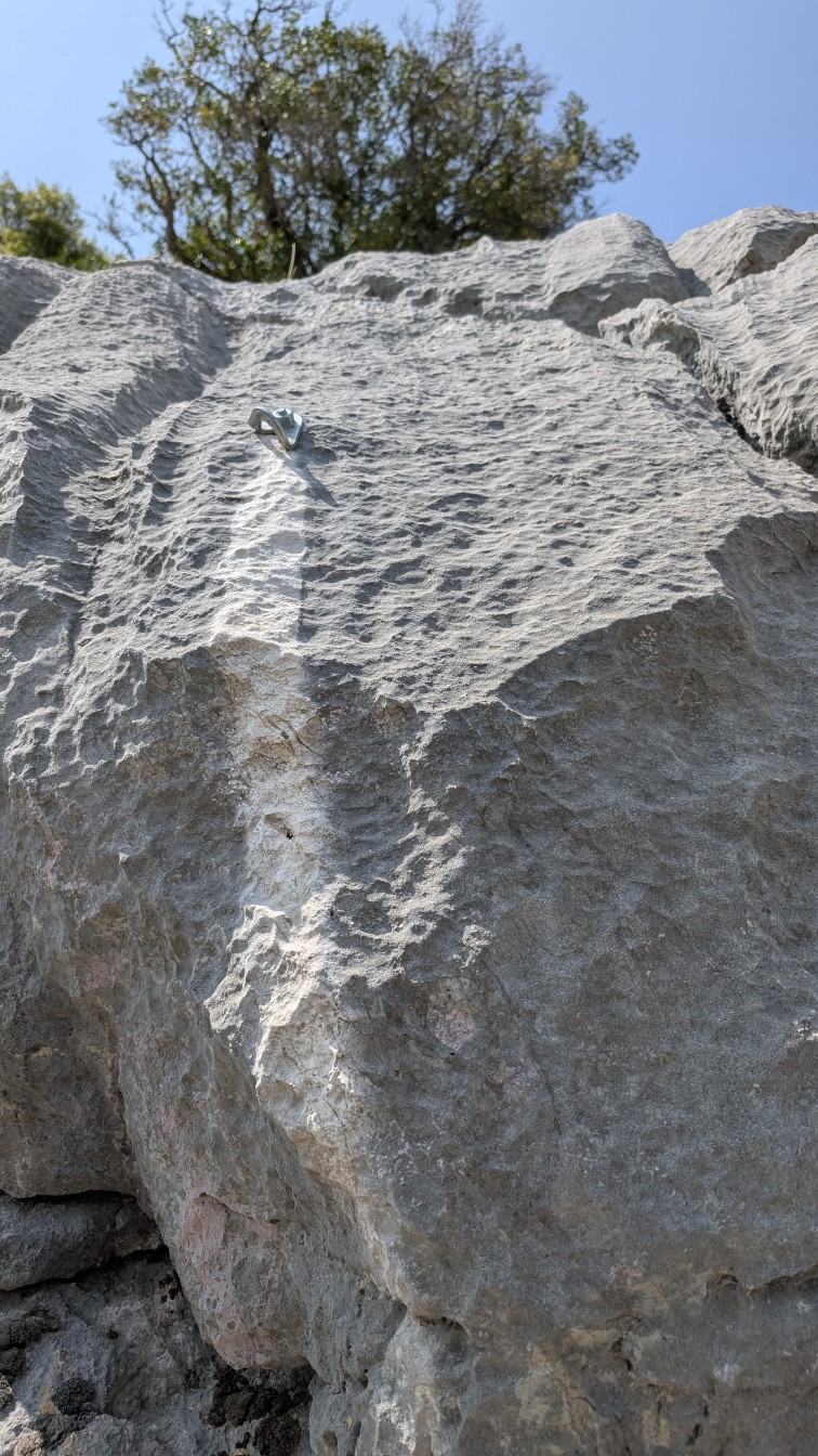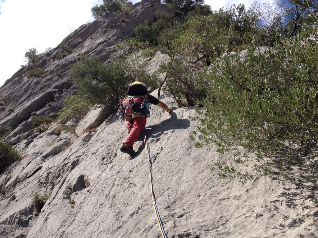 - L9 57mt, 5c+: sosta su pianta, zero spit sul tiro ma facile, solo vecchi cordoni su clessidre o piante