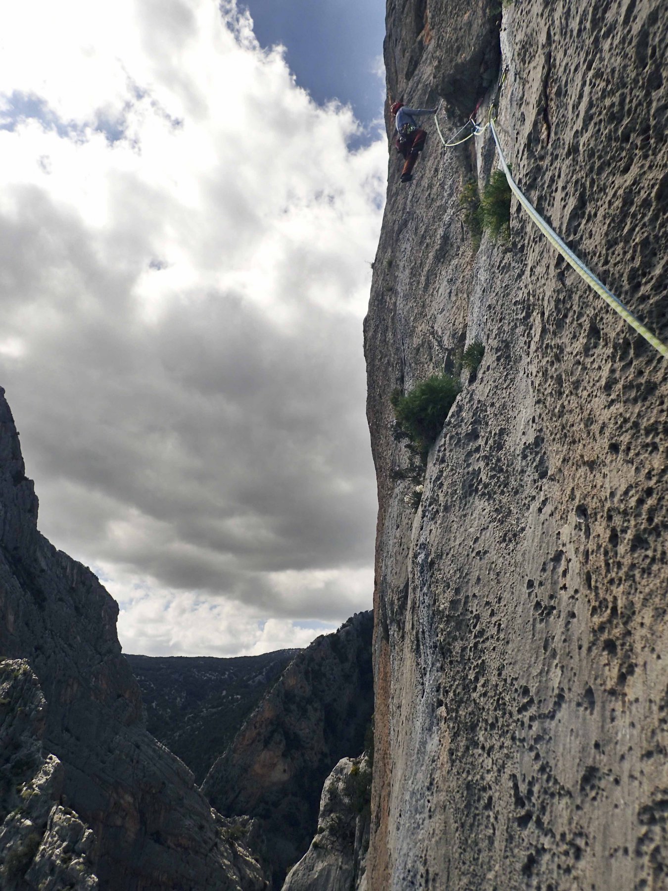 Roccia da favola, arrampicata sempre tecnica su gocce e tacche e qualche bella fessura. Ambiente grandioso!