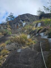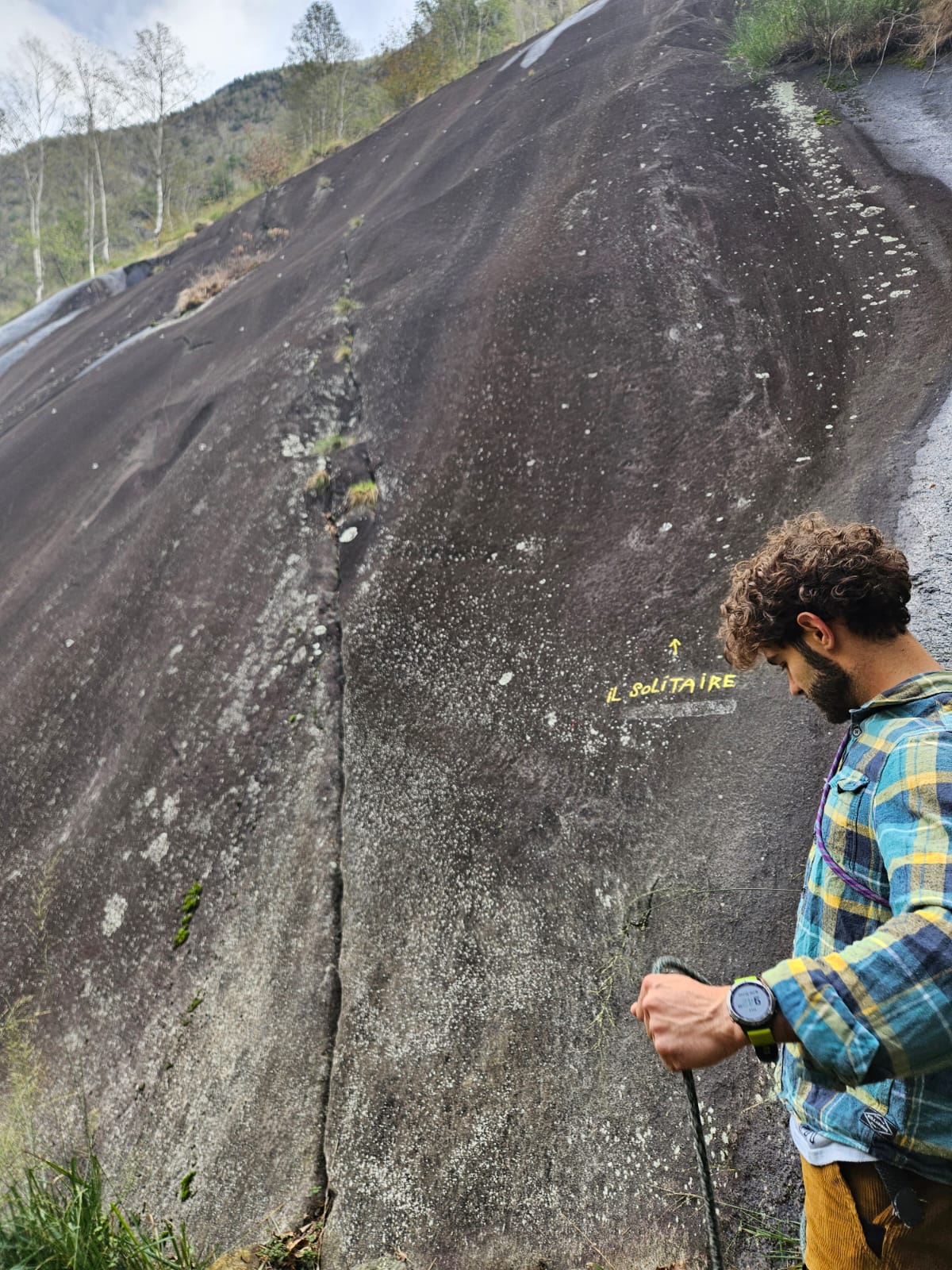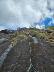 Nonostante la parete fosse ancora bagnata la roccia è stata incredibilmente d’aiuto. Molto bello l’ultimo tiro.