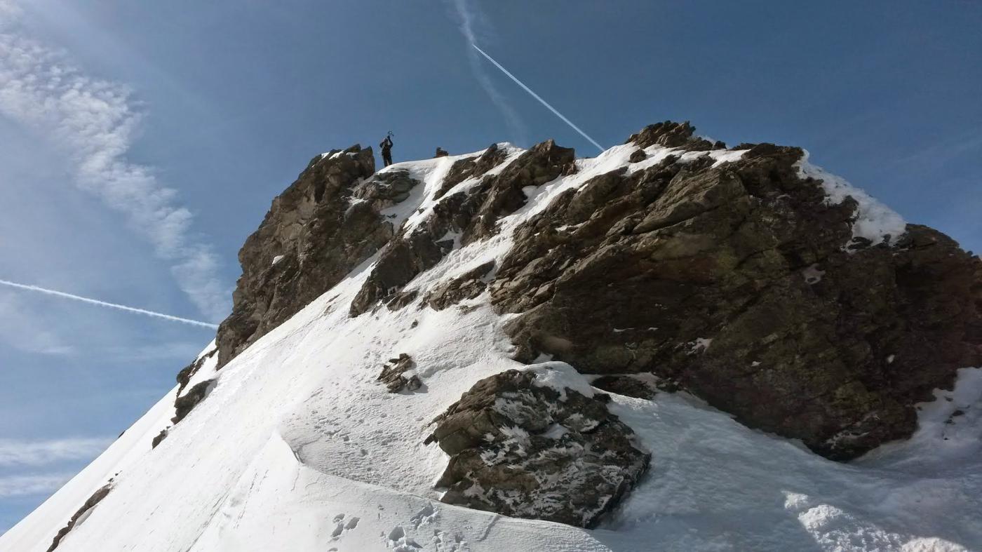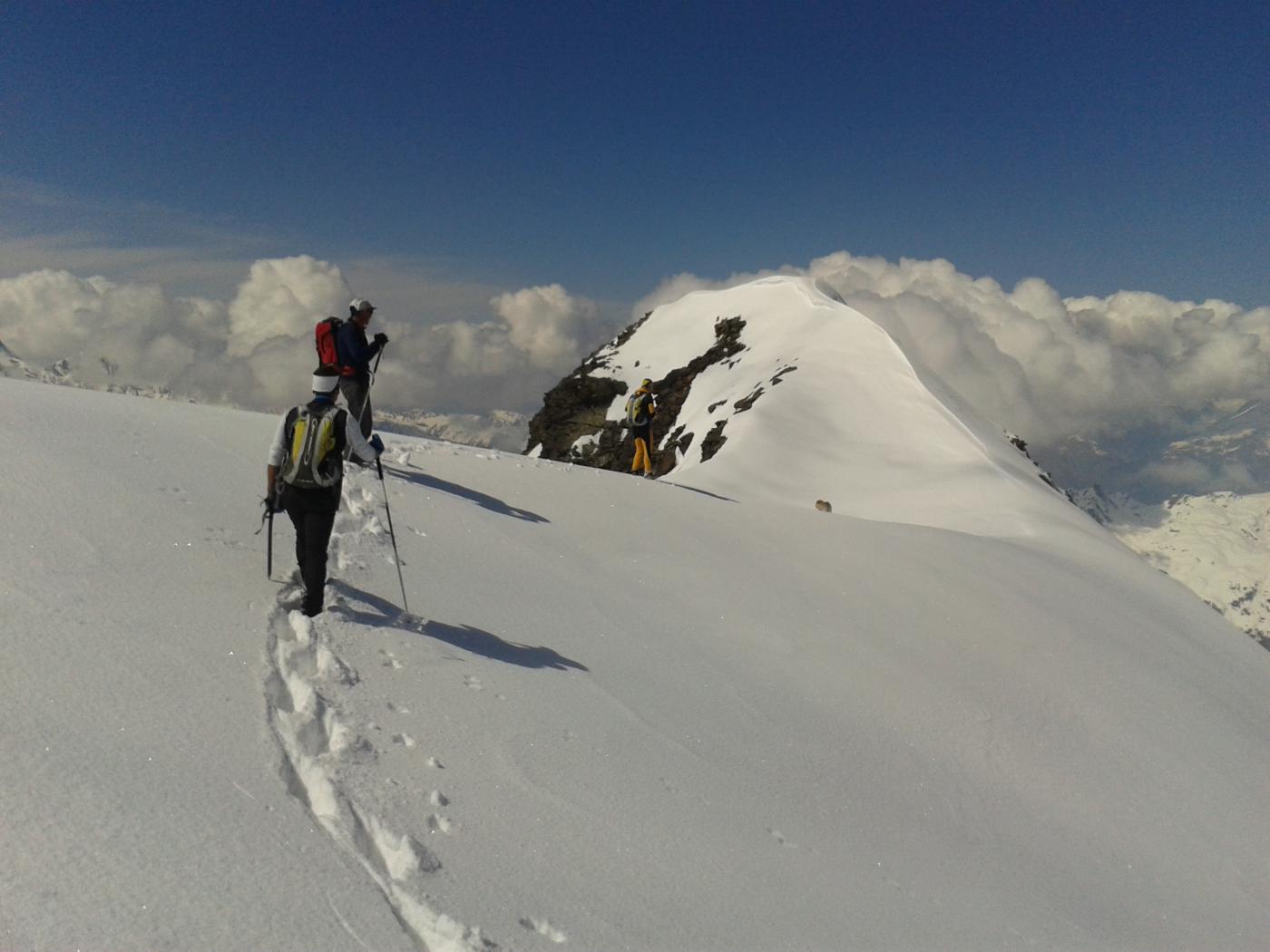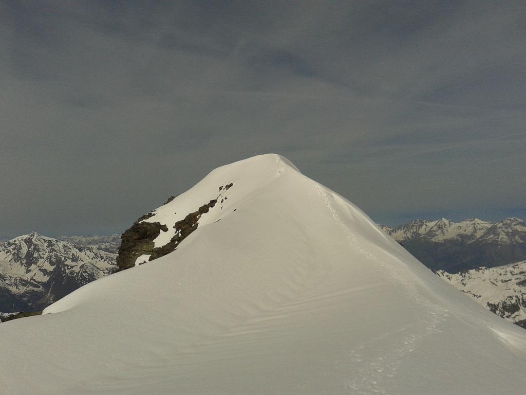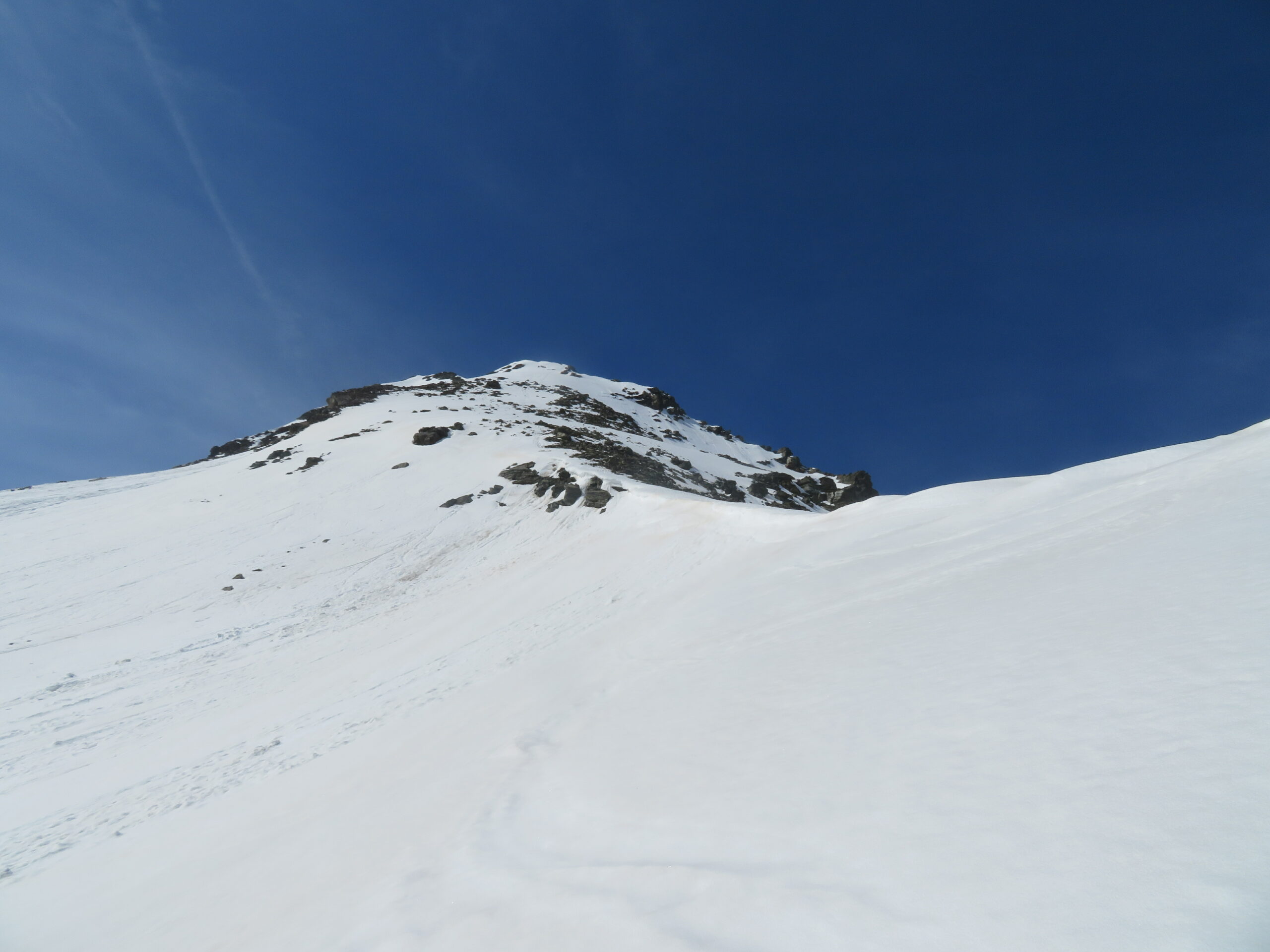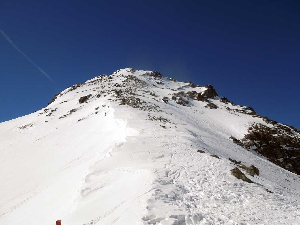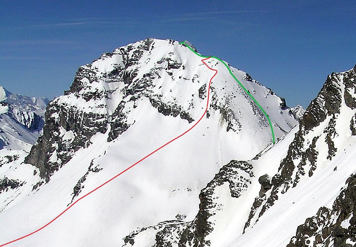 raggiungere la cresta nel punto migliore a secondo dell’innevamento; seguire poi la cresta superando alcuni tratti più’ affilati portandosi sul versante francese o italiano; infine dopo un tratto nevoso pianeggiante raggiungere la bella e panoramica vetta .