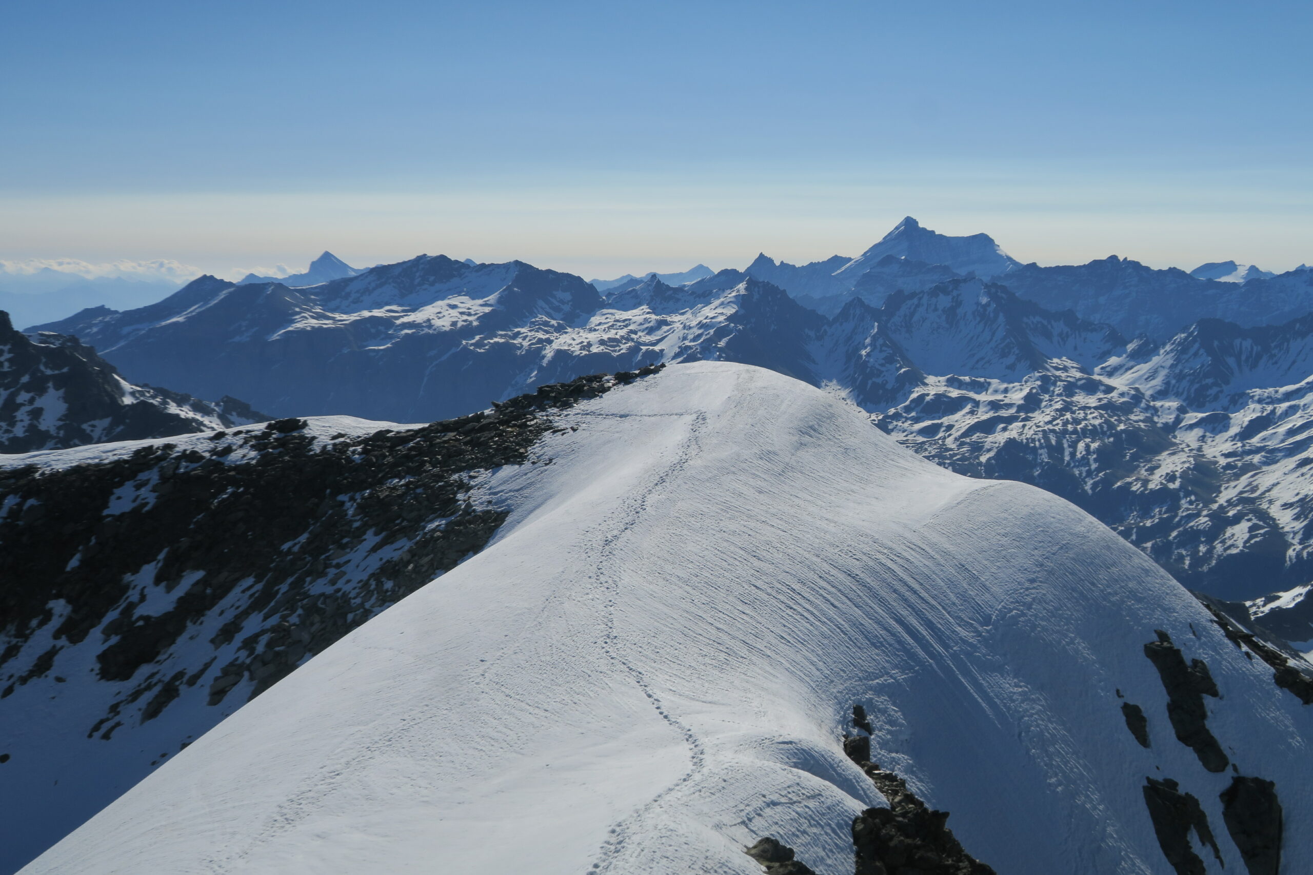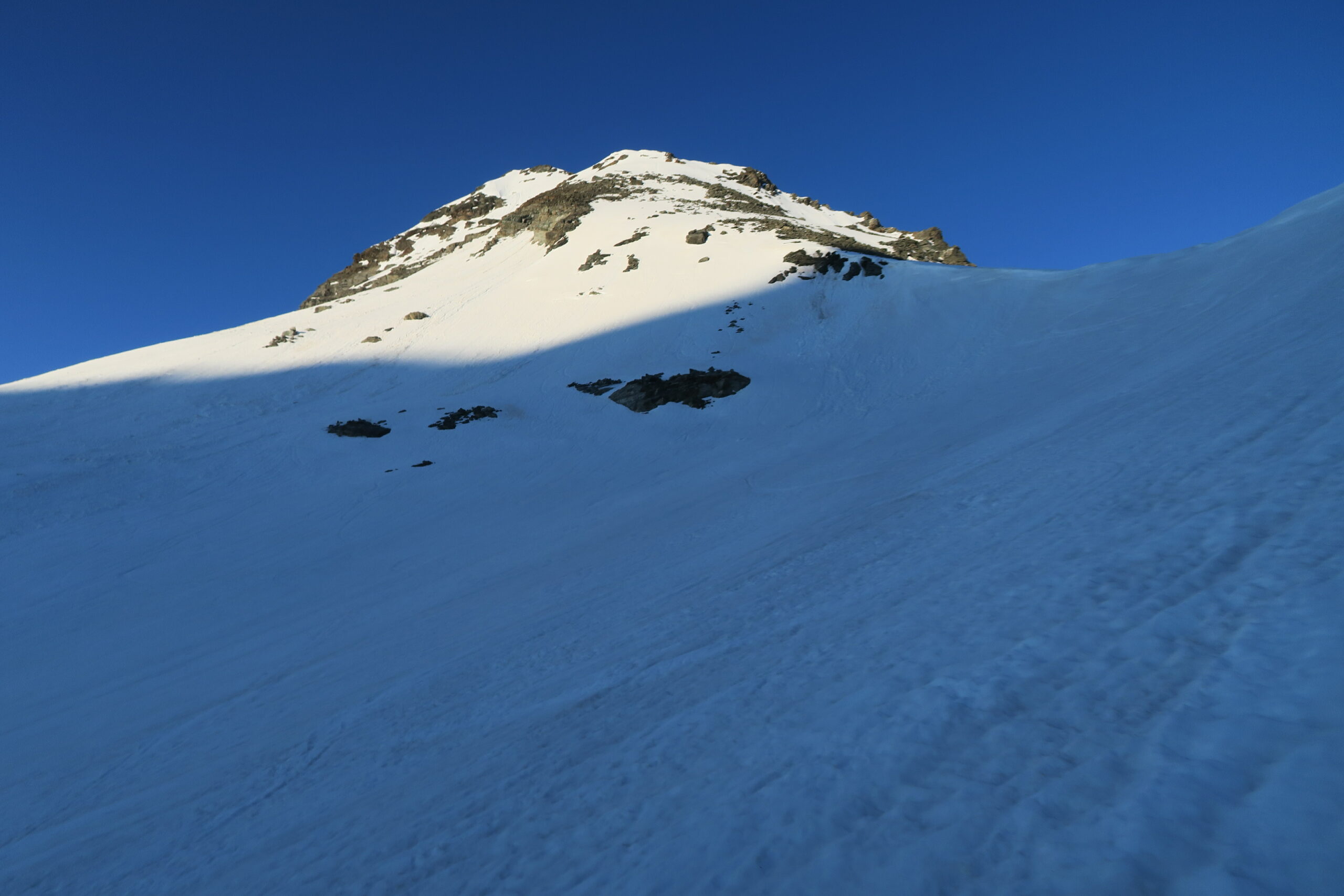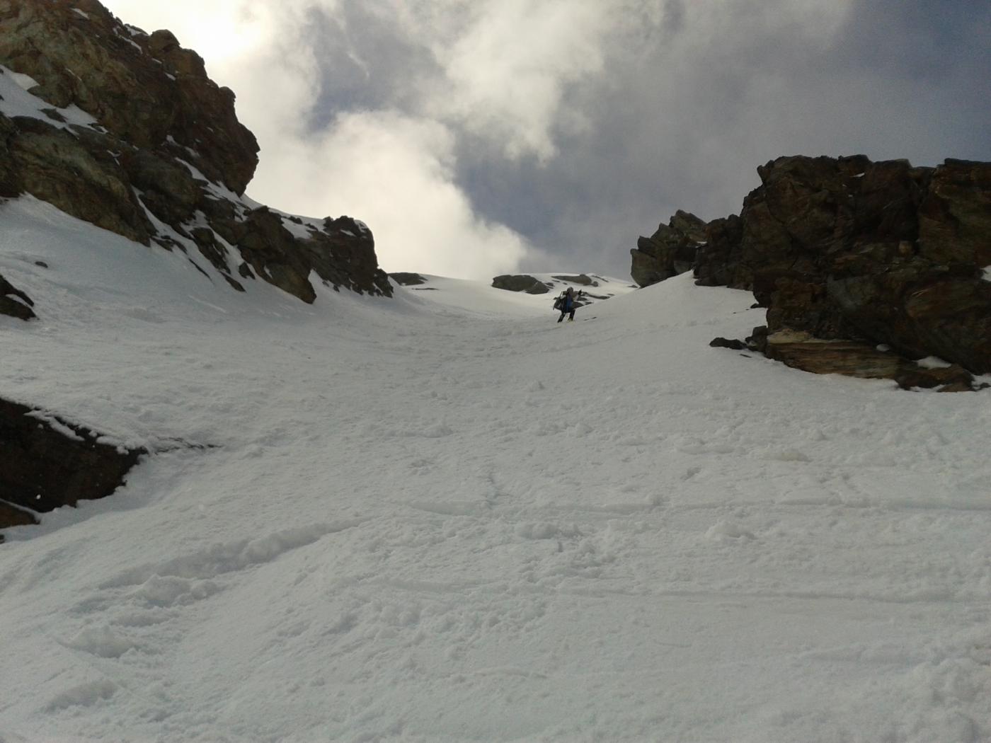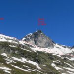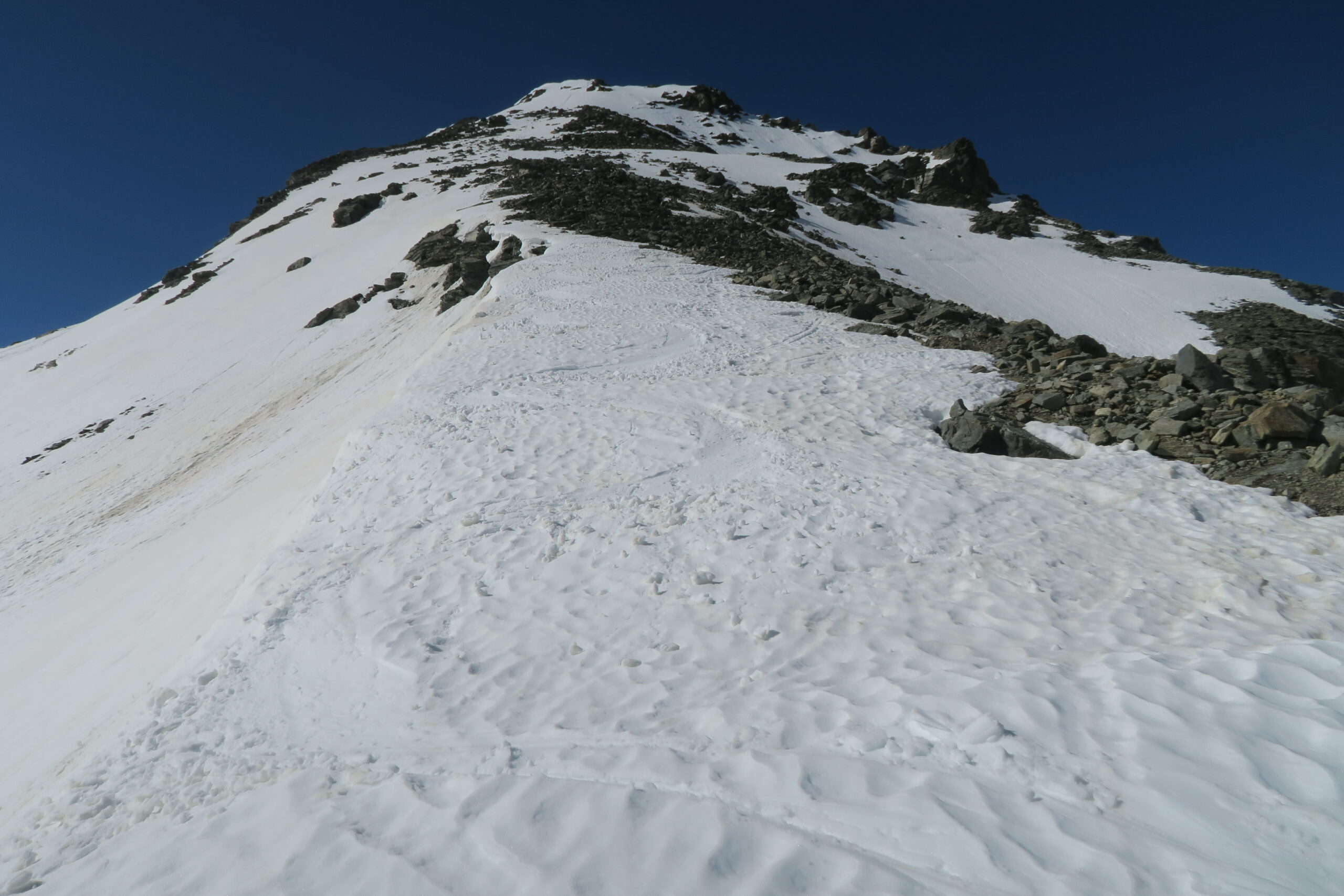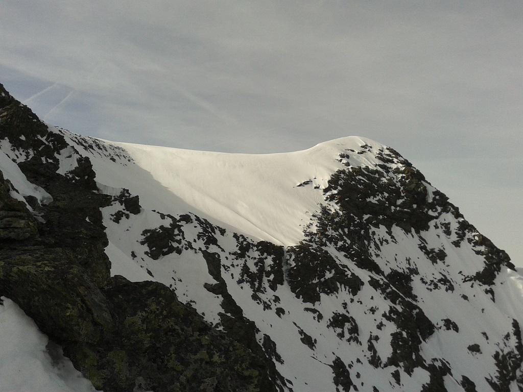 raggiungere la cresta nel punto migliore a secondo dell’innevamento; seguire poi la cresta superando alcuni tratti più’ affilati portandosi sul versante francese o italiano; infine dopo un tratto nevoso pianeggiante raggiungere la bella e panoramica vetta .