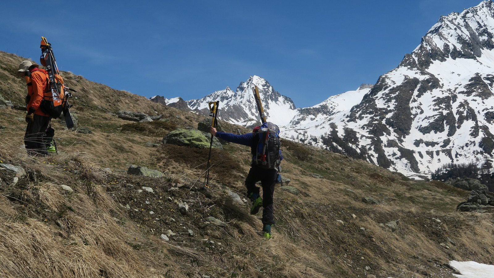 Seguire inizialmente il medesimo itinerario dell’Ormelune, in fondo al vallone svoltare a destra in direzione del lago di San Grato; proseguire lungo i pendii di sx in direzione del colle della Sachere; prima di arrivare al colle, con buon innevamento, incominciare a salire sulla sx lungo i sostenuti e bellissimi pendii che portano verso la vetta;