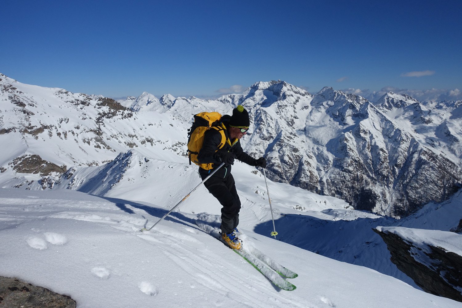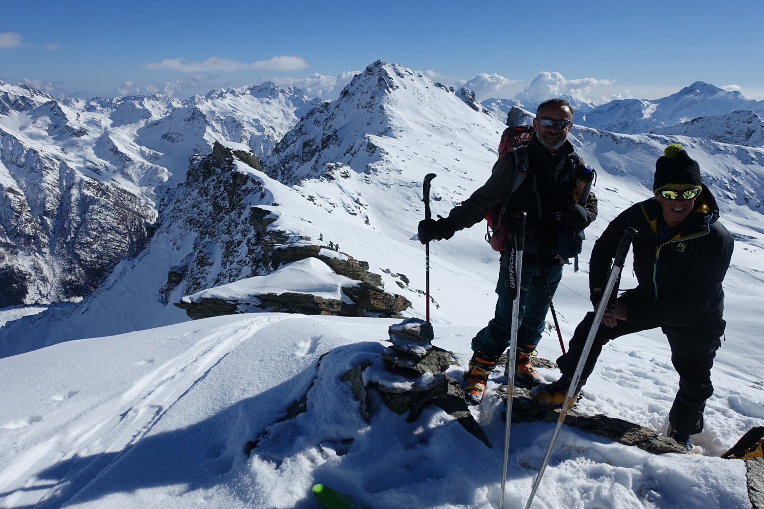 Saliti in funivia fino al Crest (8€ A/R) raggiunto il col Perrin nel frigo e poi salita fino alla vetta. Giornata spettacolare e neve in discesa da favola, fino alle piste sotto il Crest con cui siamo tornati a Champoluc.