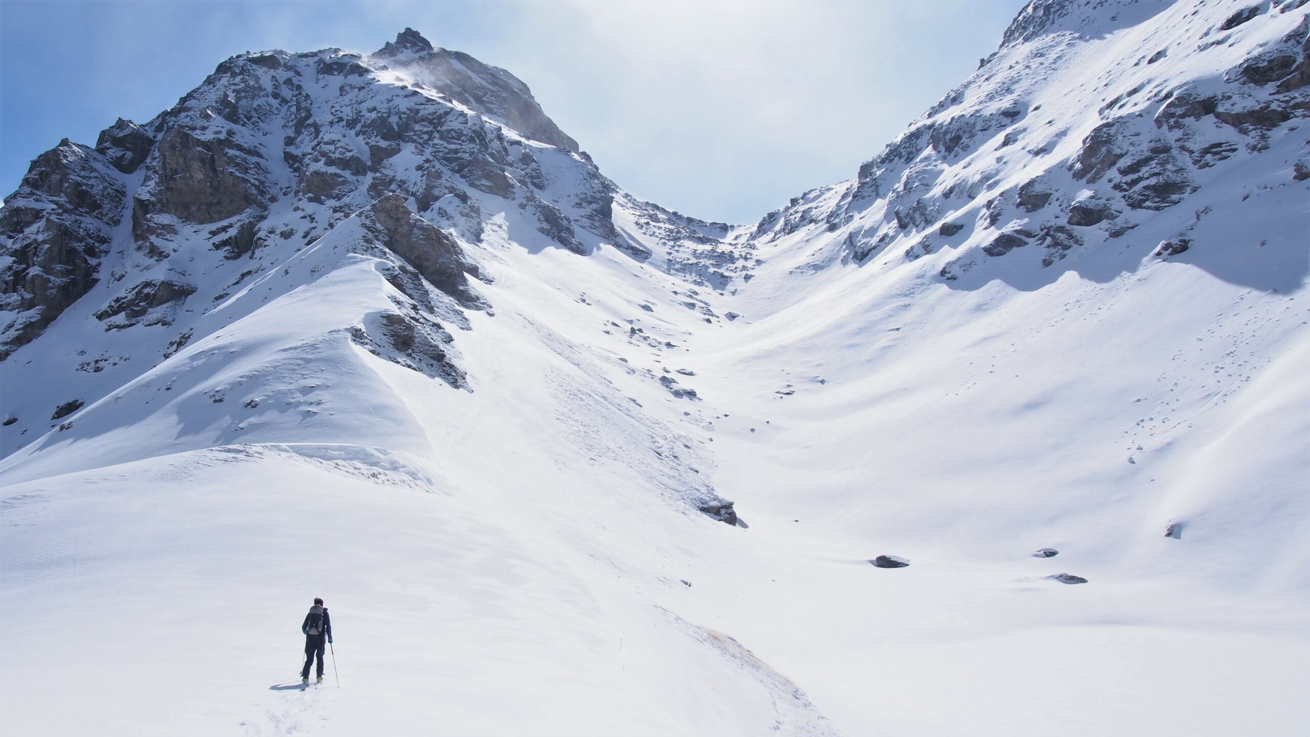 Preso l’impianto delle 7.55, si tengono gli sci per un breve tratto poi conviene toglierli e portarli per 20min.