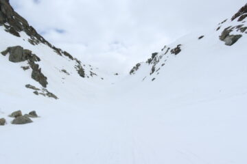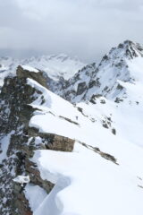 Discesa: il pendio ripido dalla cima aveva neve dura ma sempre ben sciabile, il canale: neve un pò dura con accumuli di neve ma sempre divertente;dal laghetto in giù spettacolare, fondo duro con sopra neve fresca e poi trasformata