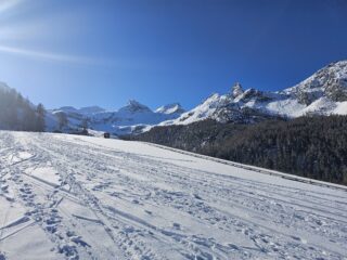 Neve 5 stelle fino al bosco sulla cuneaz, poi molto colla fino alla pista. Per scendere in paese ci sono parecchie pietre ma con lingue di neve si riesce a scendere fino a champoluc (ancora per poco)