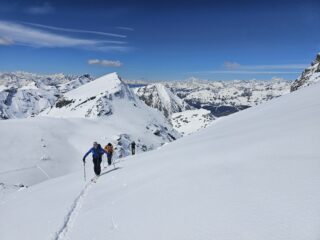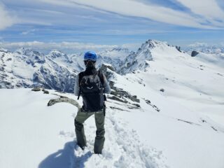Si arriva in cima a piedi, ultima parte della cresta un po’ delicata per presenza di roccia e ghiaccio.