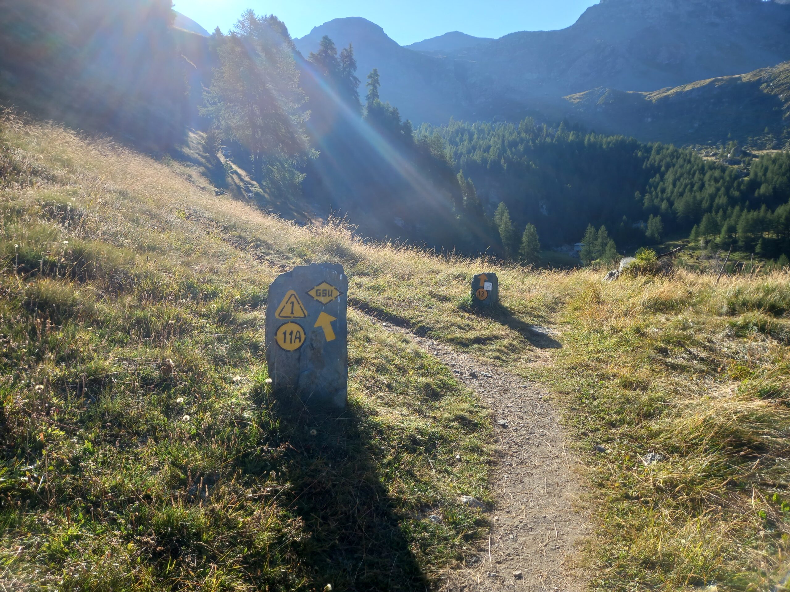 Partito da Champoluc nei pressi della chiesa, da cui parte Alta Via 1 con indicazioni sentiero 13 per Crest e Cuneaz e sentiero 11A per Testa Grigia. Occorre raggiungere frazione Cuneaz, oltrepassarla sempre su sentiero ben indicato. Ad un certo punto l’indicazione del sentiero 13 non appare, sostituita dall’indicazione sentiero 11A: va bene lo stesso, non spaventatevi, infatti poco dopo vi troverete ad un bivio: a SX si imbocca il sentiero 11A, proseguendo dritti il 13. Proseguire su quest’ultimo, toccando un alpeggio, costeggiarlo e seguire il sentiero che sale verso il lago soprastante. Dal lago inerpicarsi su pietraia (sentiero segnato da ometti), sino a raggiungere il colle, da cui si svolta a SX. Seguire sempre gli ometti che fanno percorrere un ampio semicerchio verso SX e portano alla vetta.