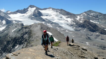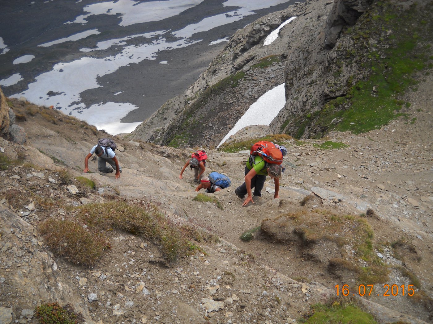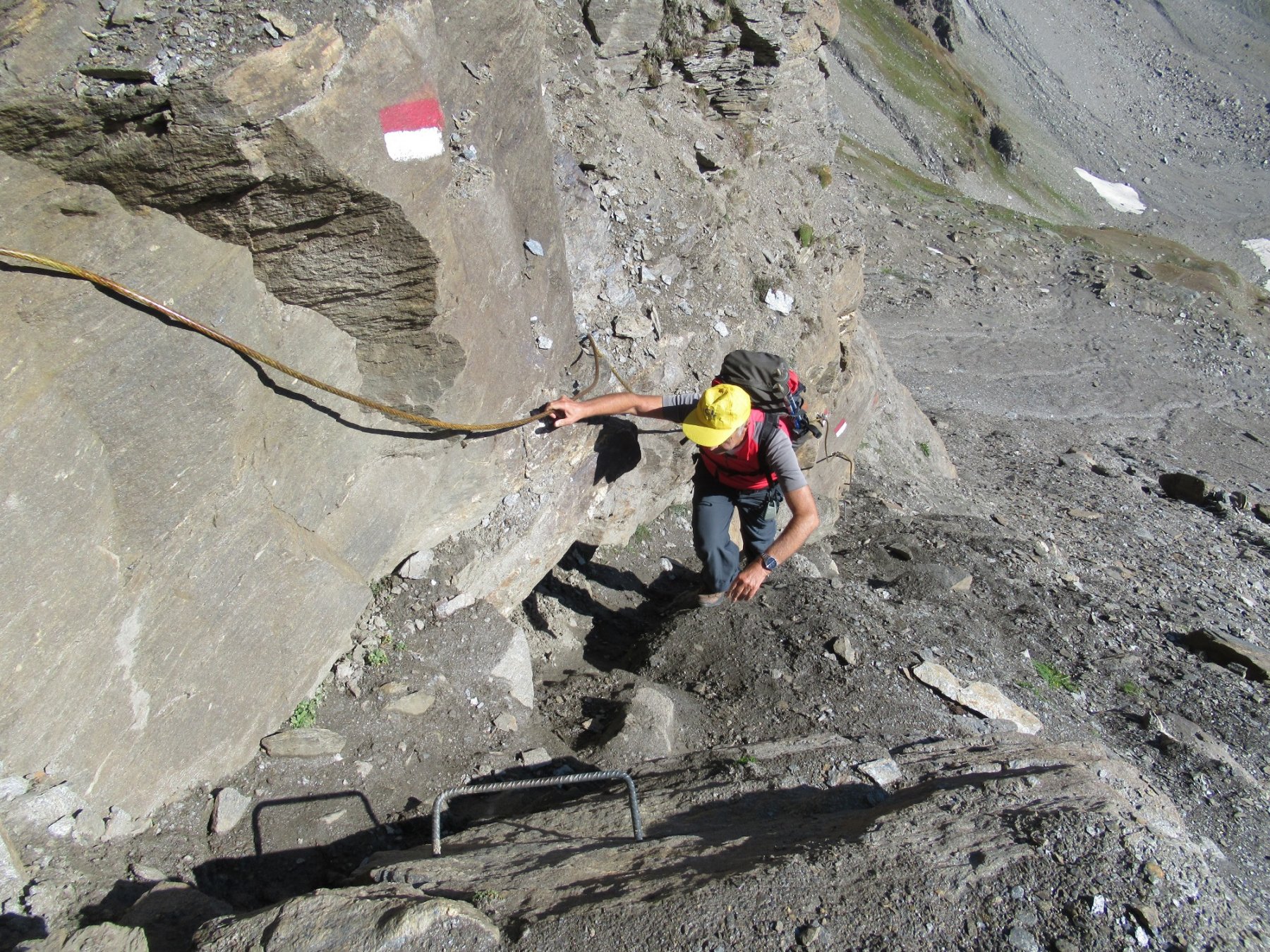 Evitare l’aggiramento delle asperità, tratto molto esposto. Tutto il percorso è ben segnato da tacche rosse, targhette bianche-rosse con la scritta La Memoria delle Alpi, targhette Parco Nazionale Gran Paradiso/Vanoise e moltissimi ometti.