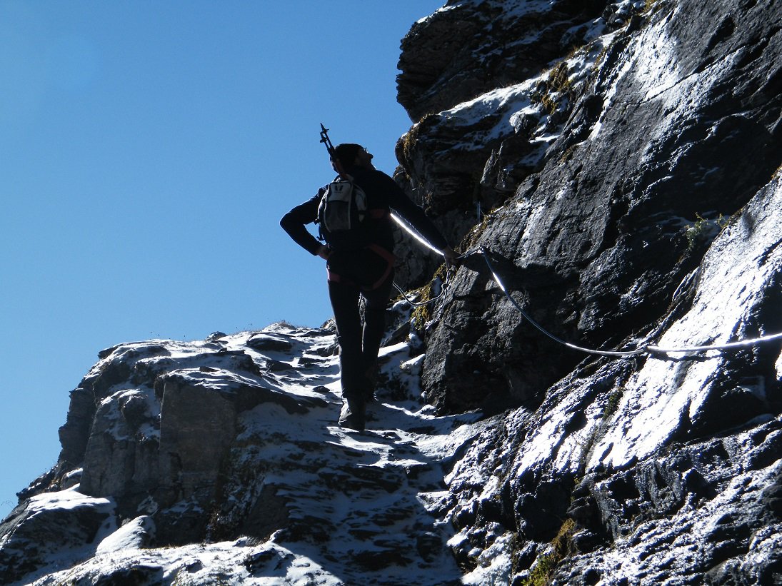 L’ultimo tratto è attrezzato con corde fisse e scalini di tondino d’acciaio; anche la parte successiva che porta al Pian della Bellotta è attrezzato.