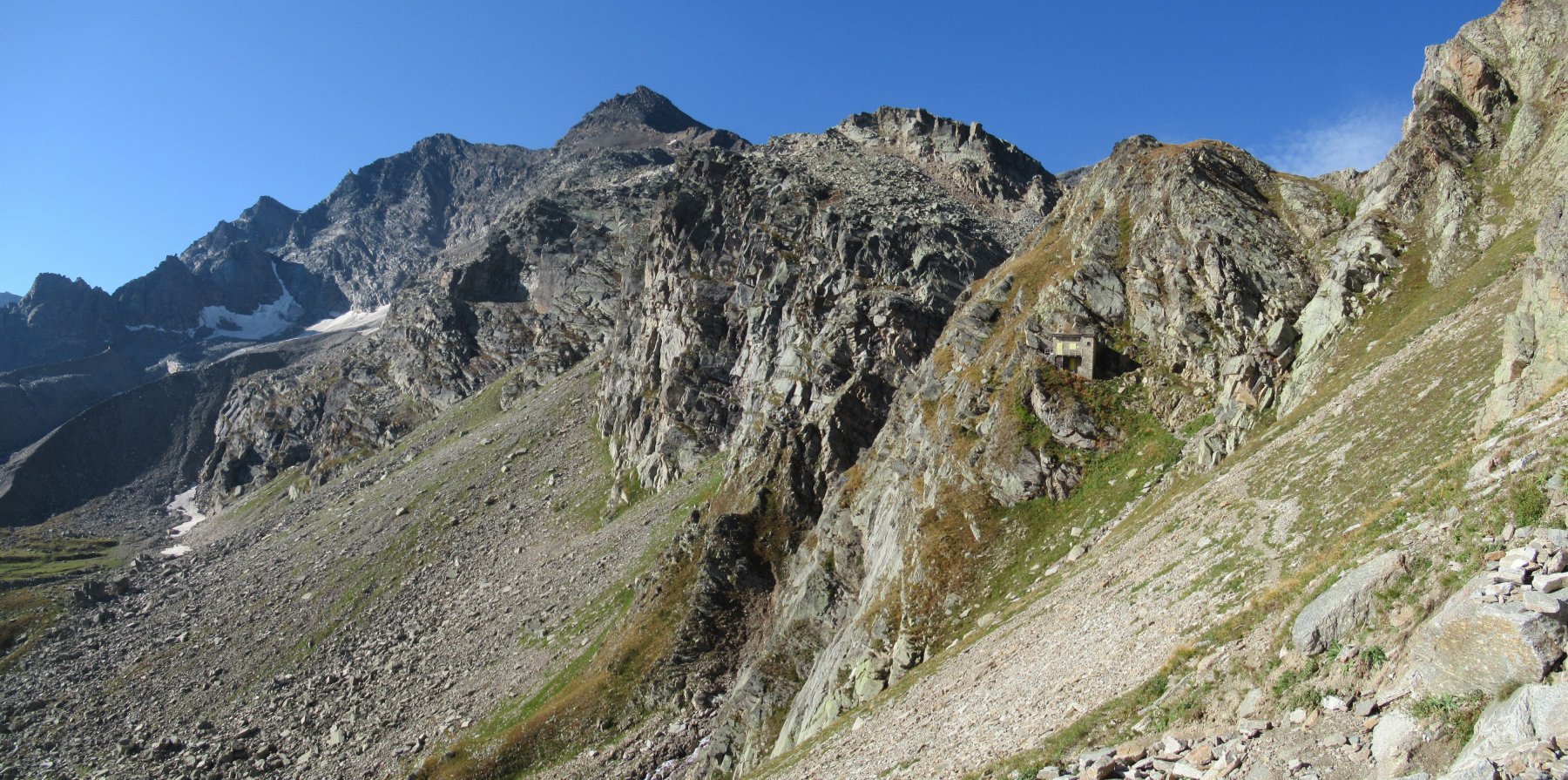Seguendone la base ci si porta con un’ultima breve salita nei pressi del Piccolo Colluret, lo si attraversa e per una breve scalinata si raggiunge il Rifugio della Ballotta.