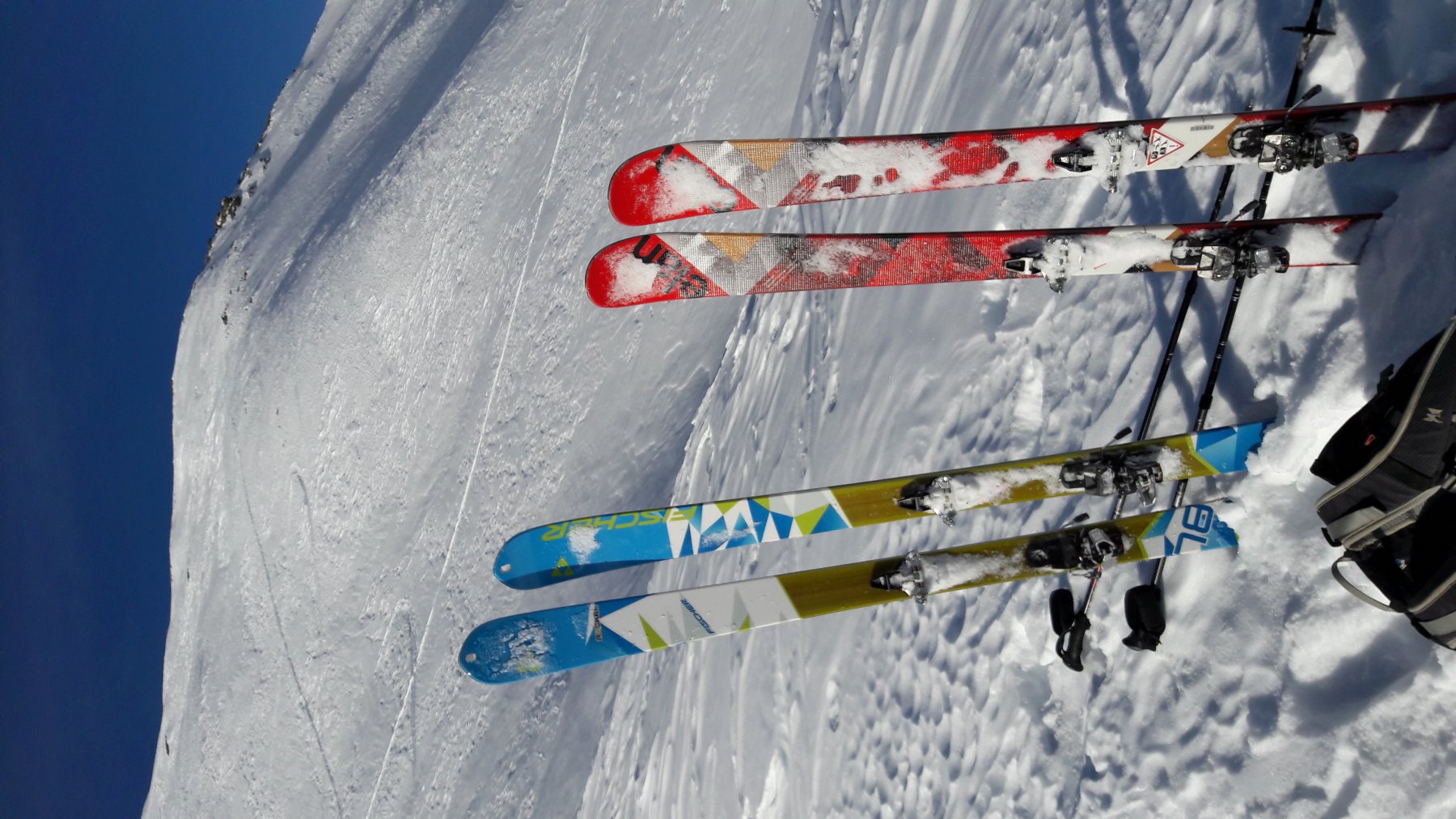 Dal Puy, 15 minuti con gli sci in spalla, oltre la neve diventa sempre più continua, si passa da farinosa a crostosa portante e non.