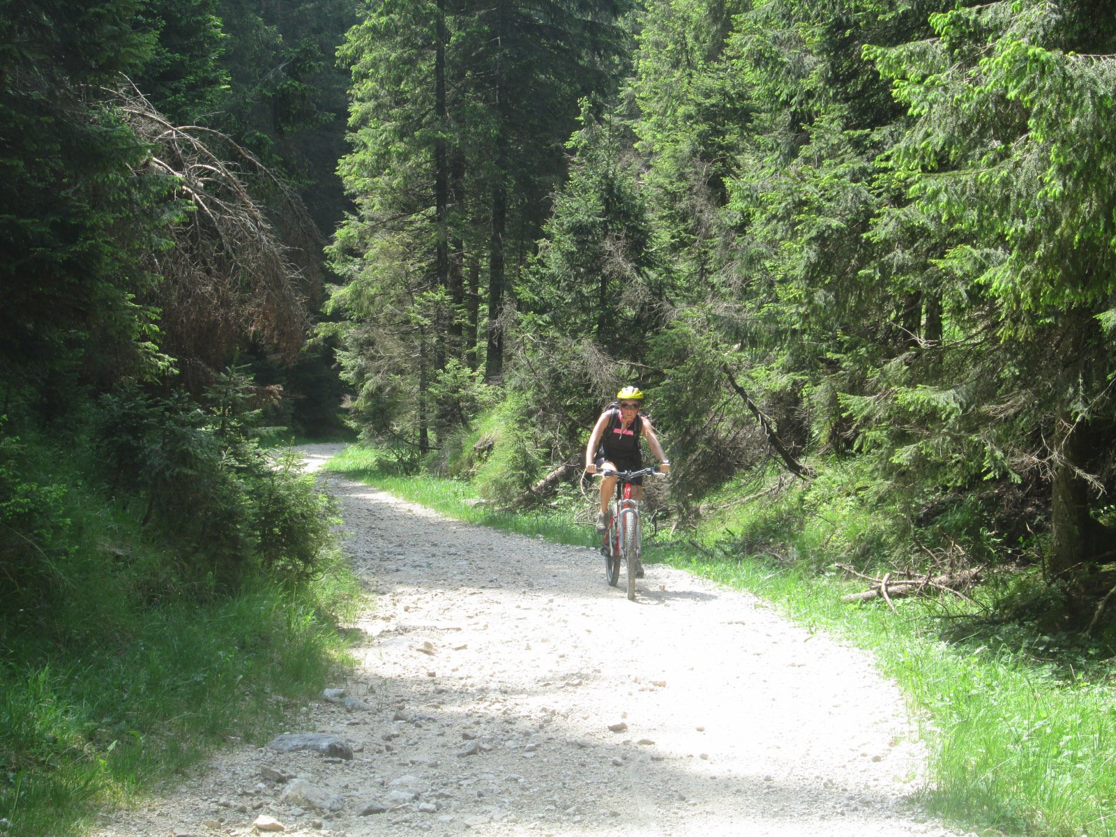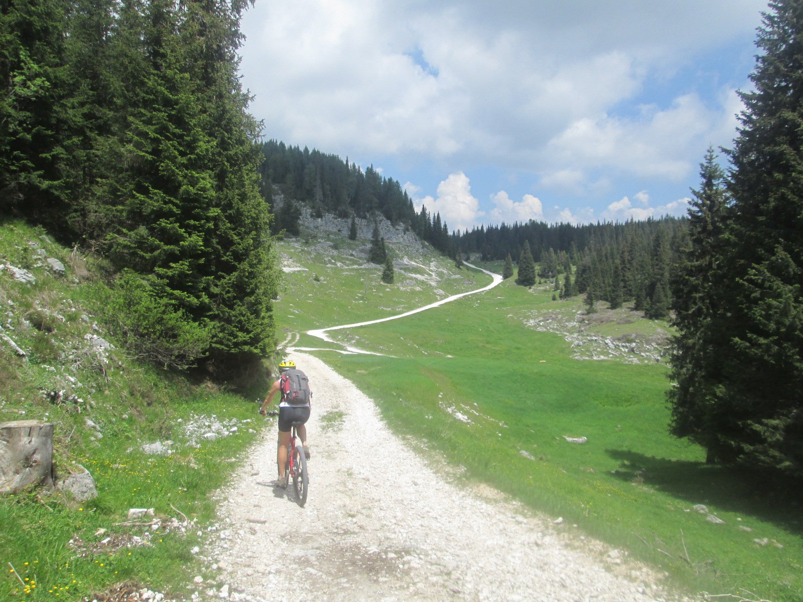 Da qui si prende la stradina sul retro della malga e tenendo sempre la destra ai due successivi bivi, si arriva alla salita della Confinaria, nel primo tratto molto ripida e con fondo sconnesso.