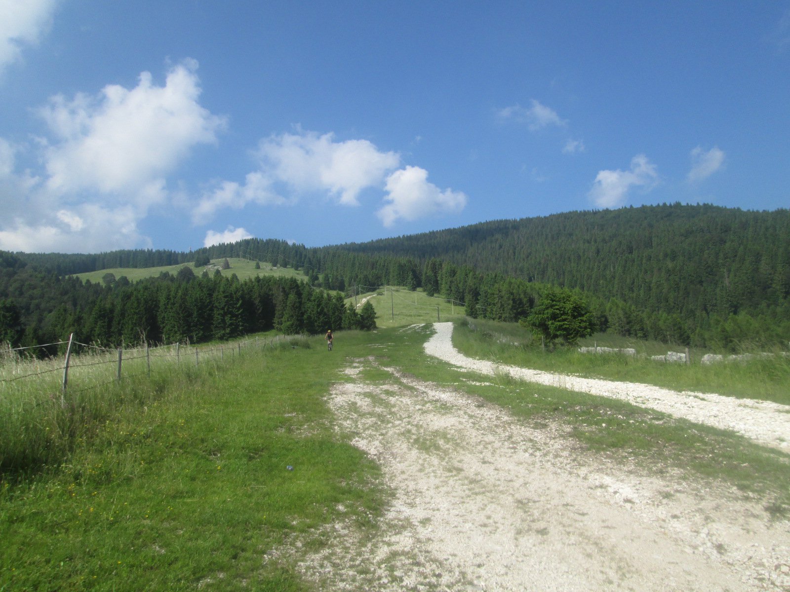 Una volta scollinati si prosegue in direzione delle malghe di Meletta, Lèmerle e Meletta Davanti. Raggiunta quest’ultima si sale leggermente su fondo erboso fino all’arrivo della seggiovia.