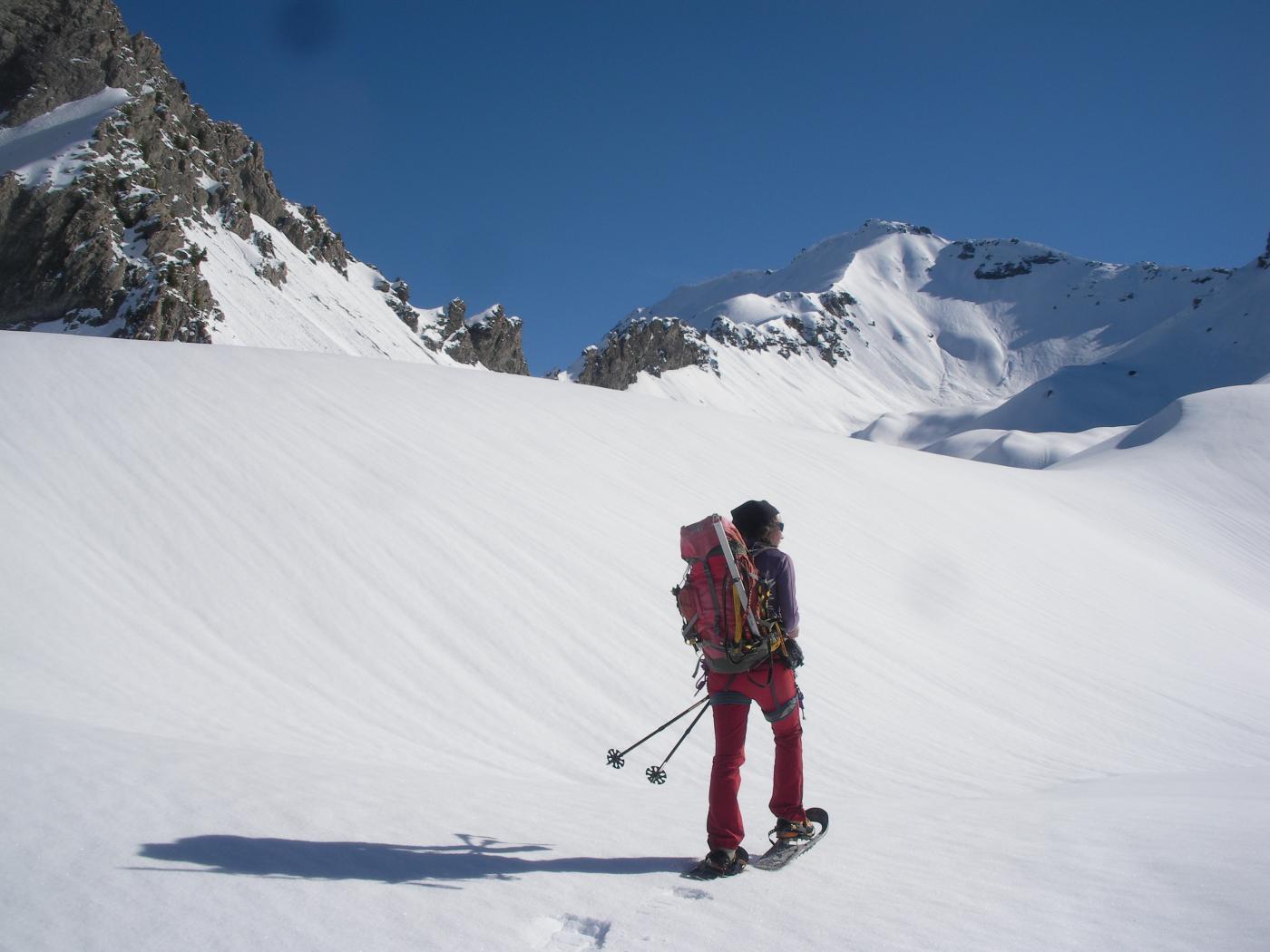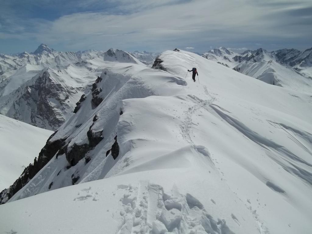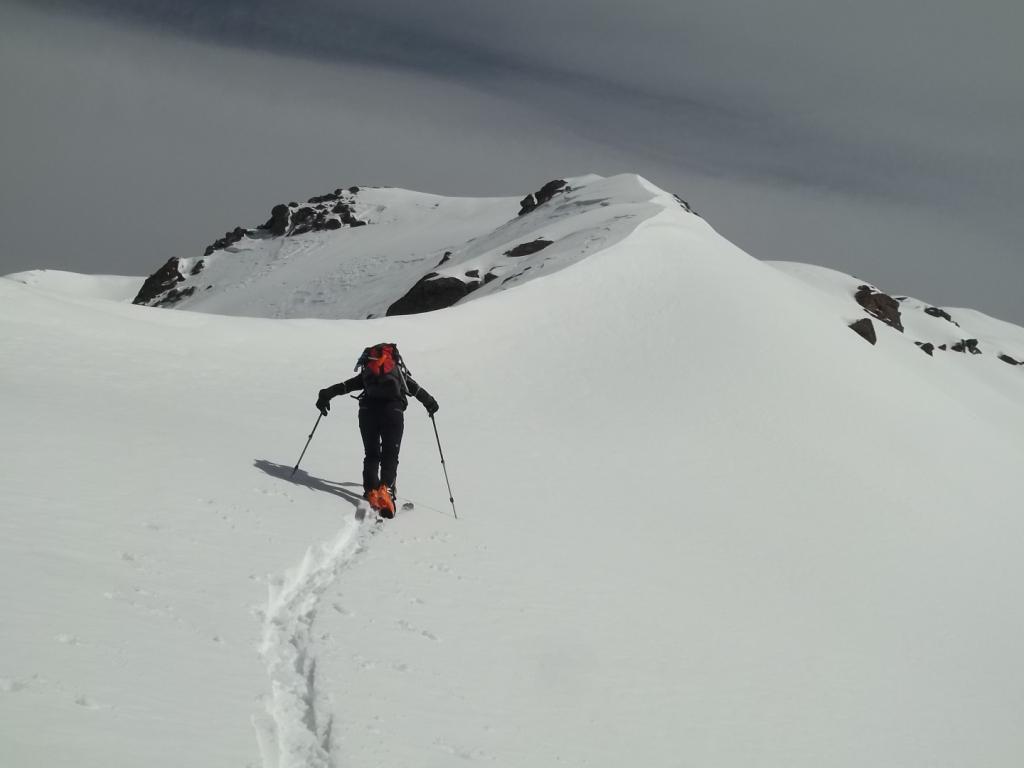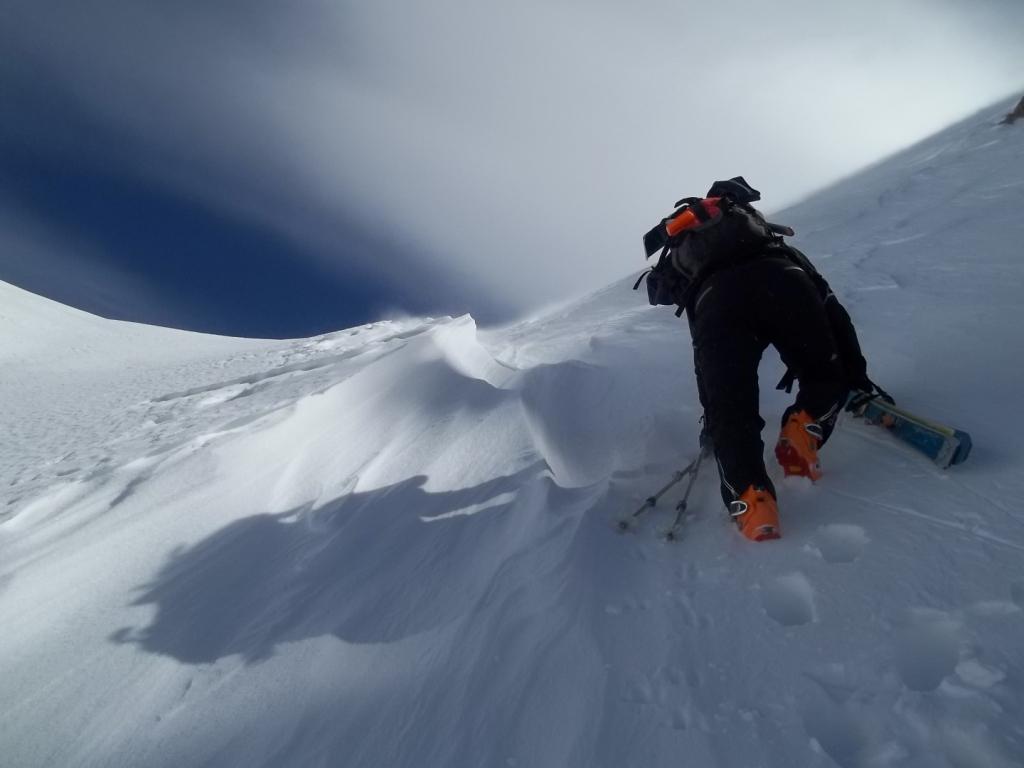 Discesa: verso nord in direzione dell’Albergian, per poi piegare decisamente a sx e tornare nel piano delle marmotte, oppure verso ovest, scendendo in piani inferiori da dove si divalla al piano delle marmotte per ripidi pendii e/o canali.