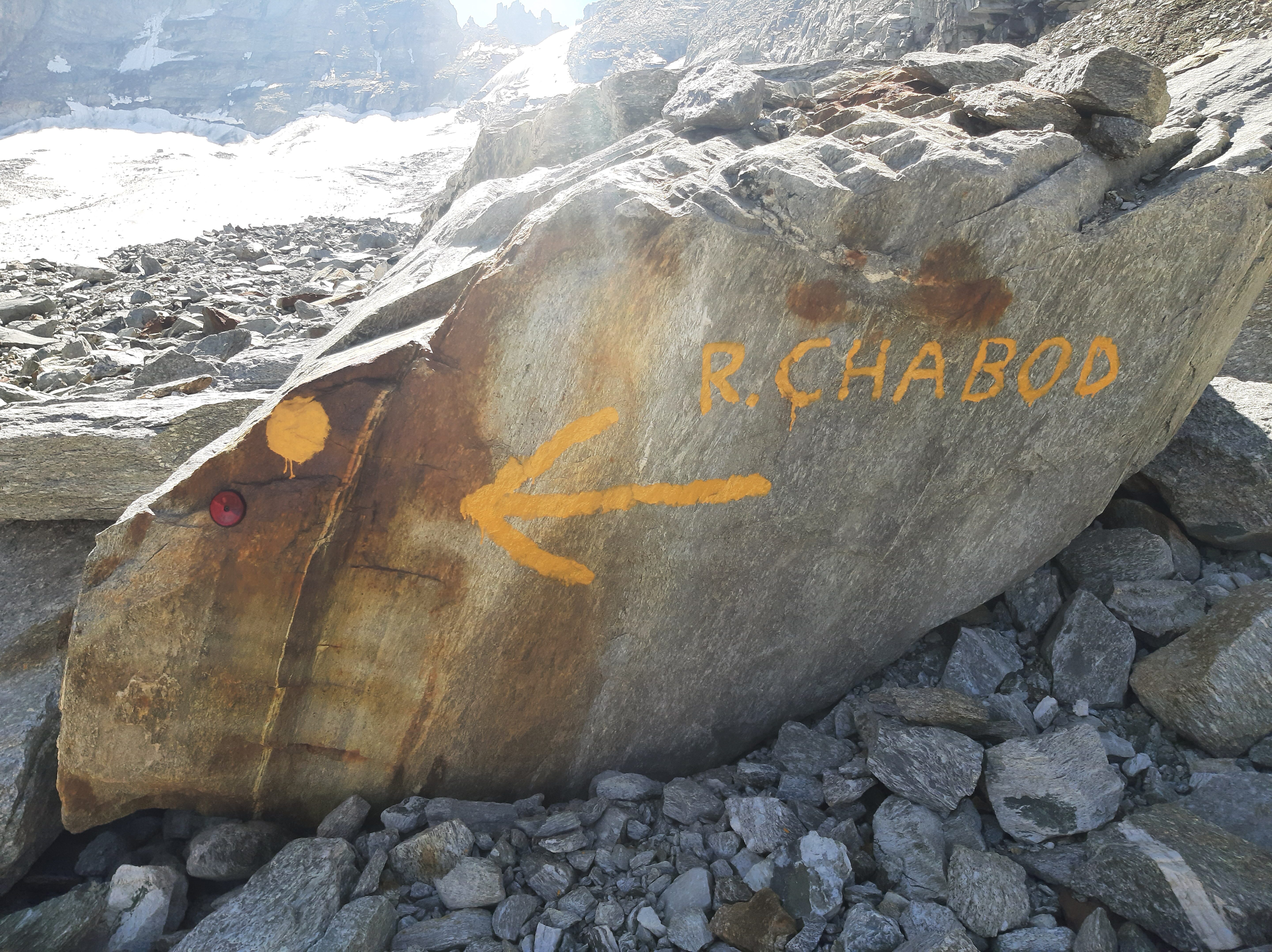 Partite da Eaux Rousse, dislivello simile. Abbiamo seguito le indicazioni per il col Lauson fino al bivio per rifugio Chabod. Il sentiero è evidente fino alla morena. Bisogna fare attenzione nel tratto in discesa, seguire sempre i segni gialli. Si attraversano due torrenti. Uno ha un passaggio manufatto comodo, l’altro per attraversarlo bisogna seguirlo appena e cercare le pietre affioranti . L’ultima morena porta in una zona con tanti massi, rovinosamente caduti. Anche lì seguire attentamente i segni gialli, ci sono, sono nei punti giusti. Vicino hanno anche i catarifrangenti. Nel punto in cui si deve salire per arrivare alla parte attrezzata c’è un bel segnale rosso. Oltre è tutto evidente. Noi ci siamo fermate alla scaletta, arrivavano giù pietre. Portarsi il casco e magari anche una longe.