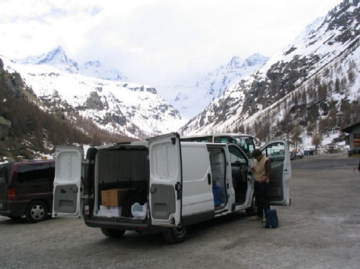 Dopo una notte al Trafic Hotel (doppia con bagno esterno) ci avviamo all’alba verso il Gran Pa. Ottime condizioni. In salita si portano gli sci per un breve tratto sul sentiero nel bosco (15-20′); in discesa, tenendosi nel canale a dx, praticamente nulla (si tolgono per 50-100mt). Giornata fantastica a dispetto delle non rosee condizioni meteo. In foto: Hotel Trafic e proprietario.