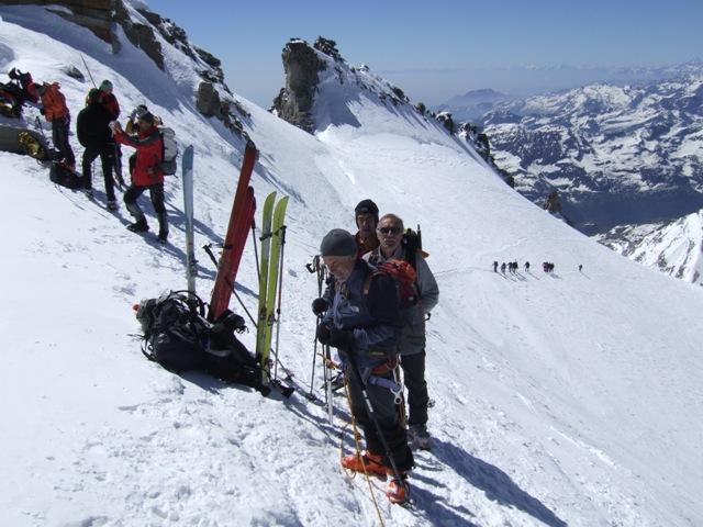 Giornata meravigliosa neve molto dura di mattino (conviene partire dopo le sei)nella parte bassa in vetta un mare di alpinisti, la discesa divertente sino a circa 200mt di dislivello dal rifugio poi acqua.