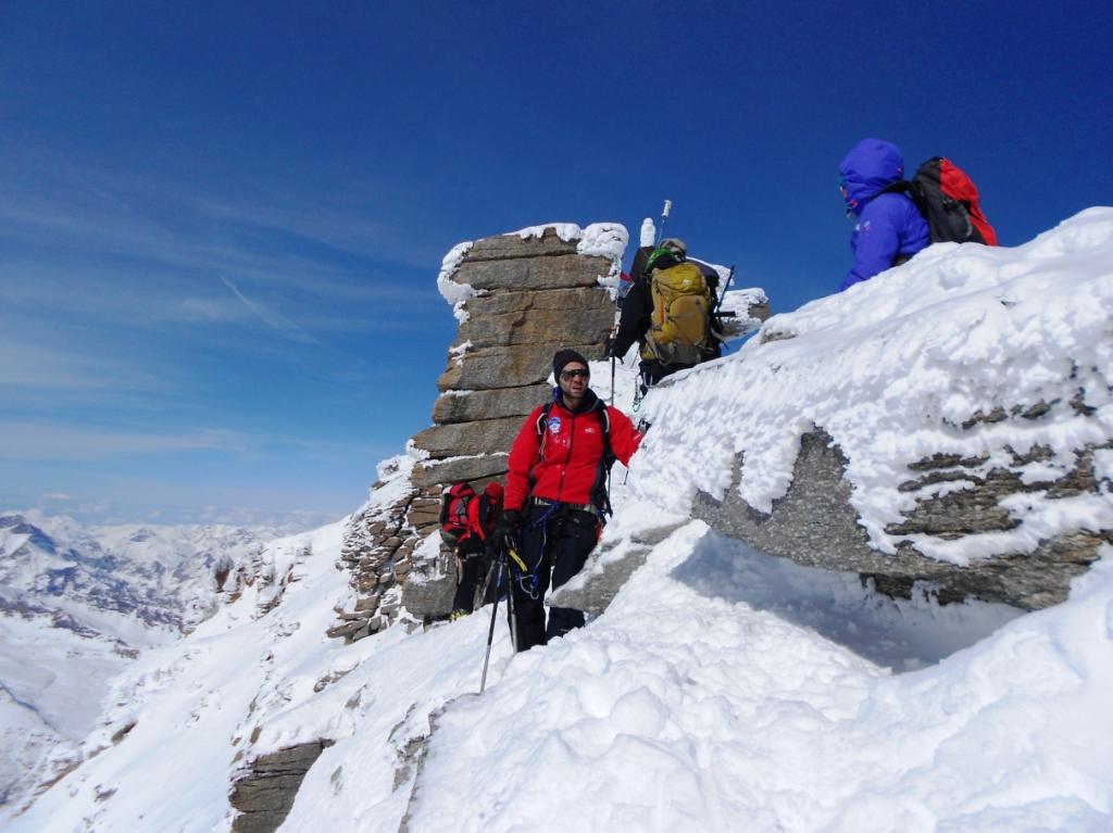 Oggi, a detta di chi già c’è stato con gli sci, in condizioni non ottimali. Innevamento buono ma non abbondante, diverse pietre affioranti nella parte bassa del ghiacciaio, utili i rampant per superare uno strappetto a q. 3500 ca., da quota 3900 ghiaccio vivo per circa 80 mt di dislivello (messi i ramponi). Crepaccia terminale che si sta aprendo (attenzione), ma si oltrepassa facilmente. Tratto finale innevato con rocce incrostate di neve, molto suggestivo.