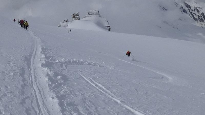 Sfruttando i valangoni del vallone siamo scesi sino a 2200m circa,3.3km dal park,un’oretta abbondante….