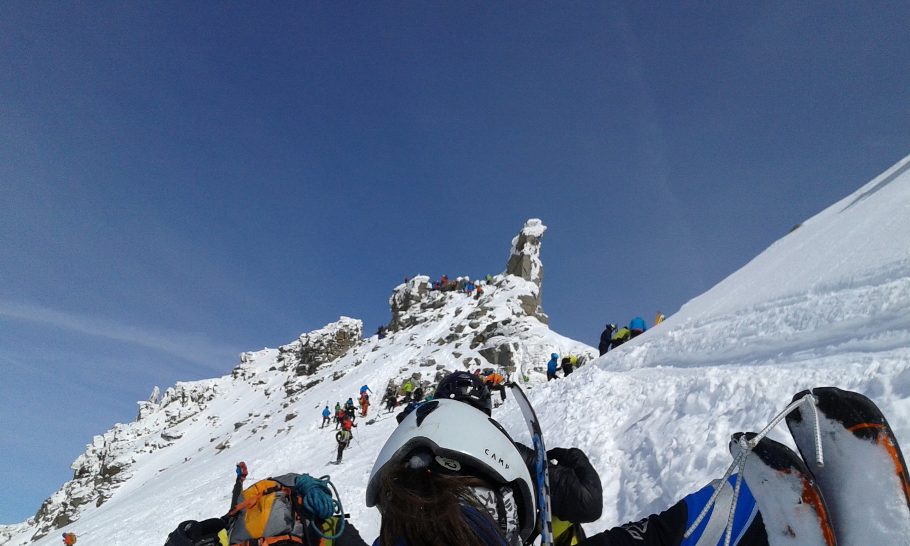 Salito da pont in giornata in compagnia di ilaria, Luciano e Mauro…giornata spaziale, temperatura accettabile, crepacci tutti chiusi e powder nella parte alta…cosa si può chiedere di più?unico smacco la lunga coda x poter attraversare la cresta finale….