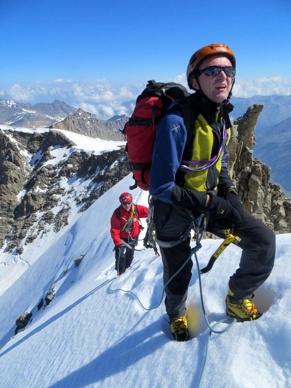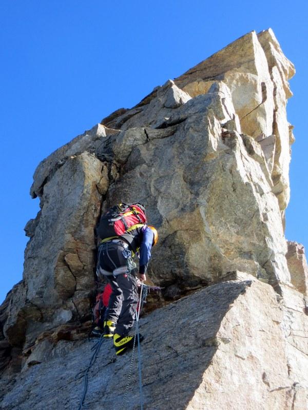 Noi abbiamo aggirato sulla sinistra l’ultimo gendarme, riportandoci con un passo esposto ma facile sulla sommità rocciosa raccordata alla cresta di neve finale.
