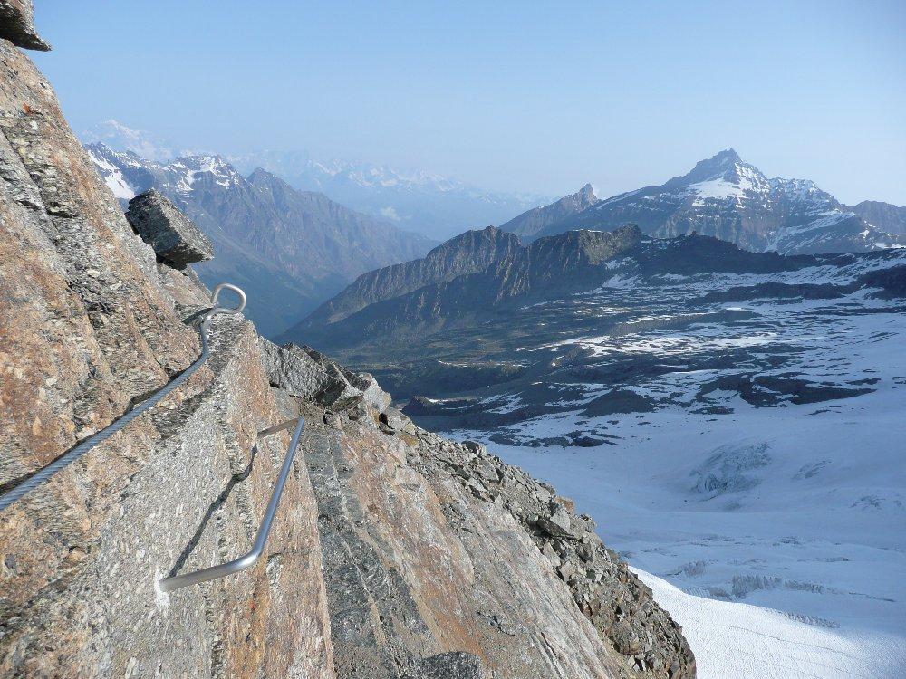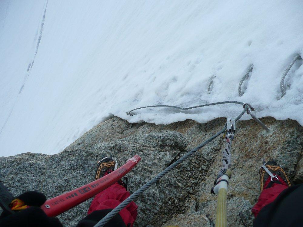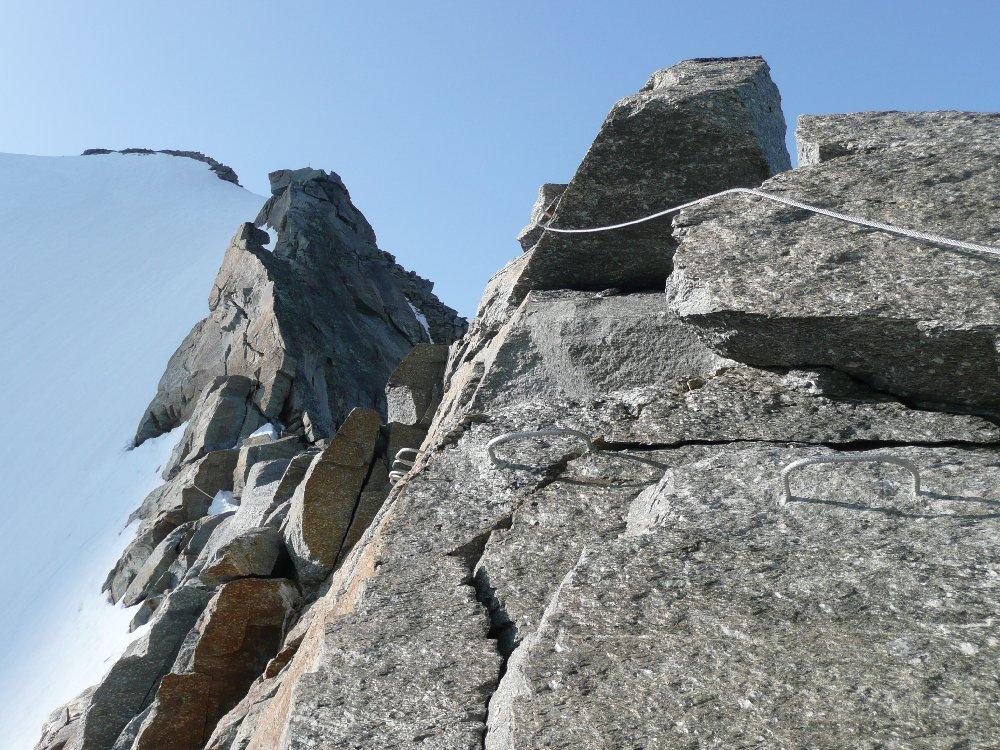 La parte attrezzata percorre un po’ il filo di cresta e un po’ il versante est, agevolata da numerose staffe per mani e piedi.