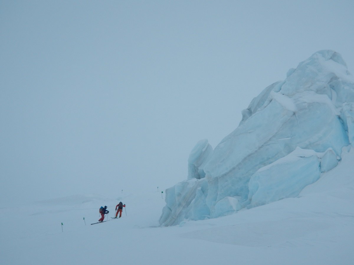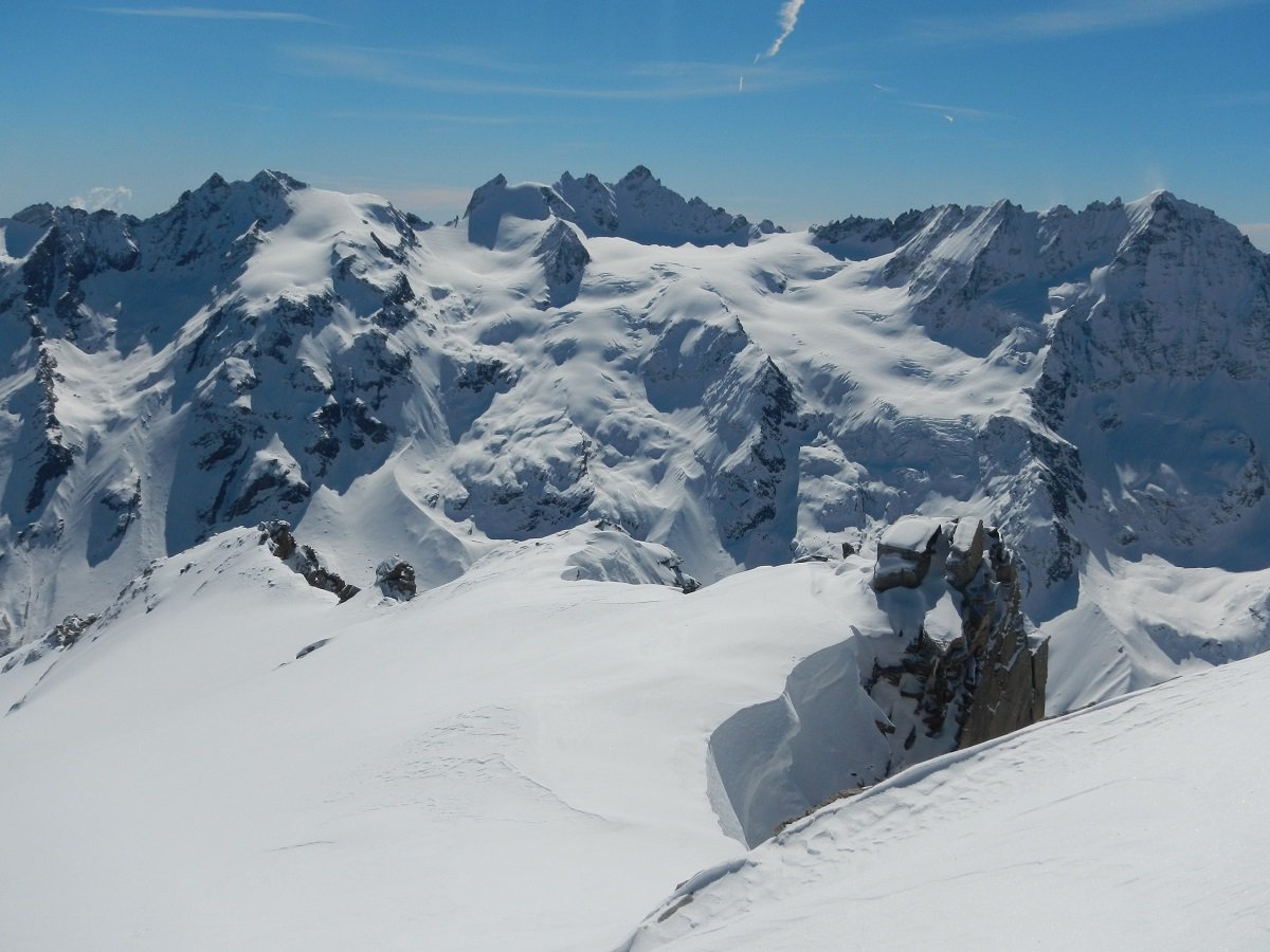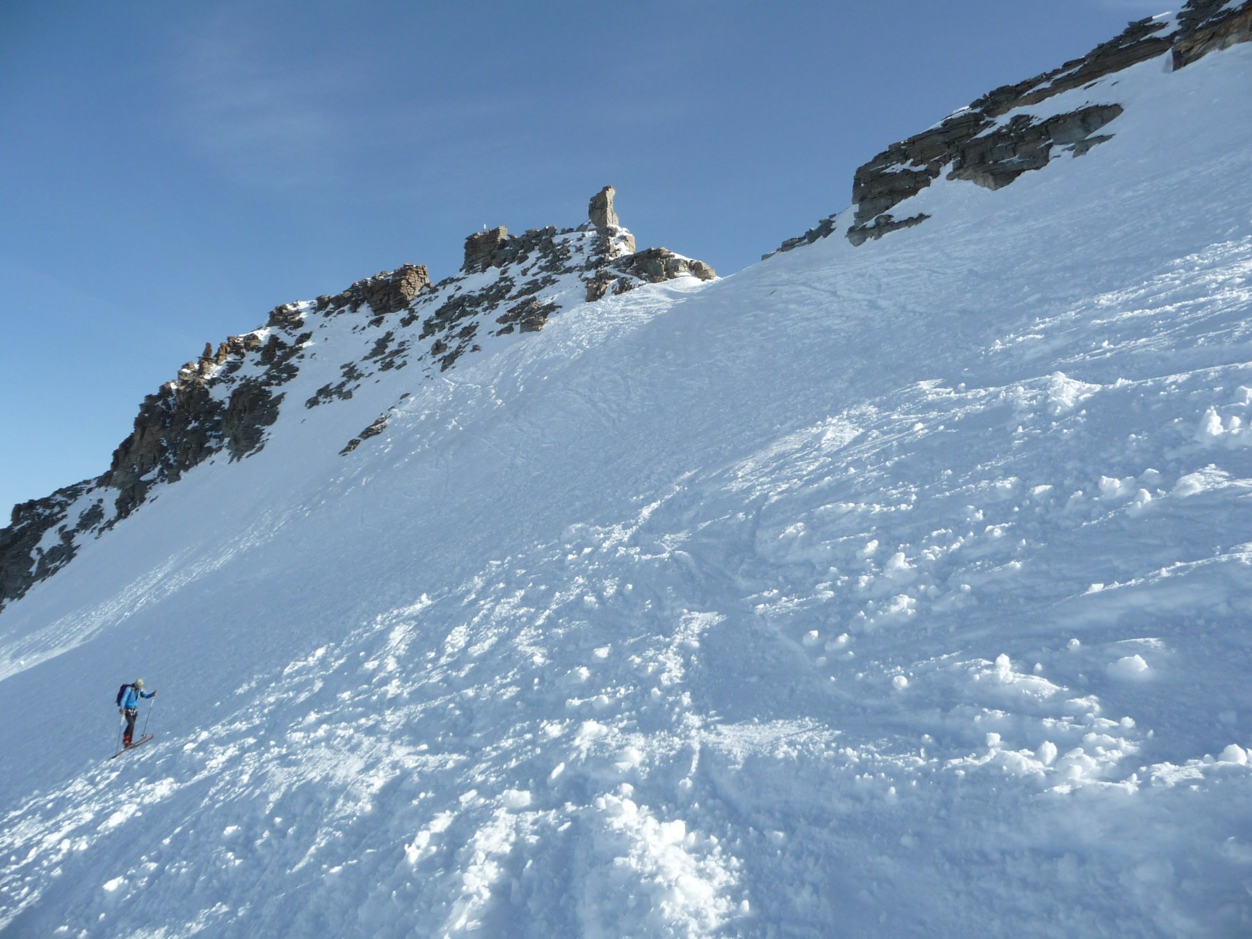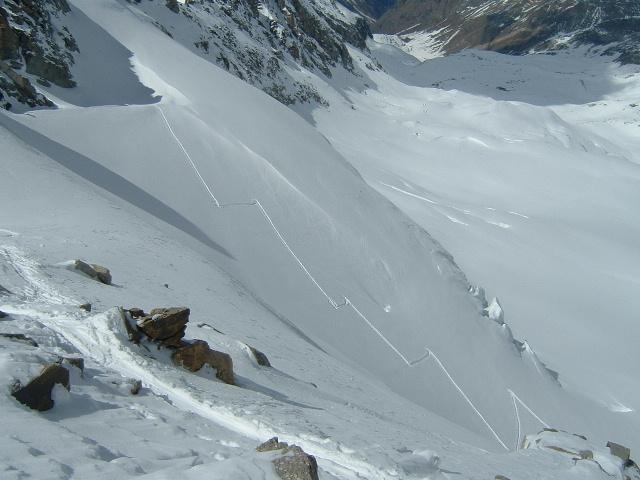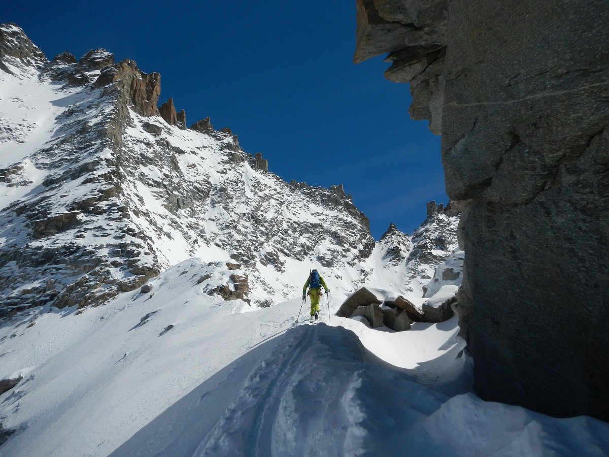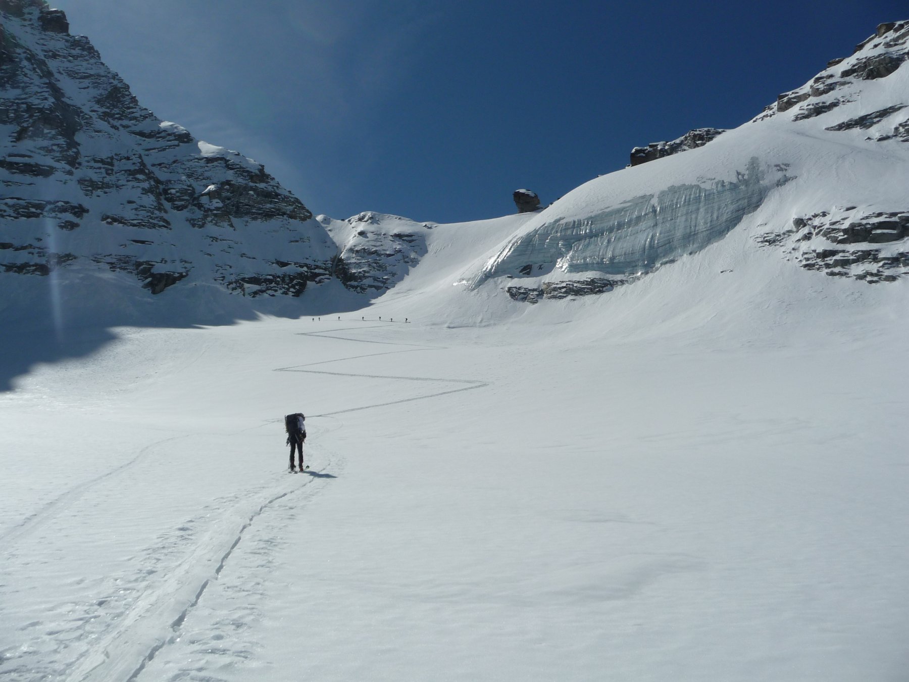 Rifugio SELLA m 2584, salita alla Gran Serra m 3552 (discesa con una doppia attrezzata sotto la cresta N). A ritroso sul ghiacciaio del Lauson fino ad attraversare sul ghiacciaio di Timorion. Attraversare il ghiaccio di Timorion e poi quello di Gran Neyron in direzione sud fino al Colle Est di Gran Neyron m 3404. Discesa al rifugio CHABOD m 2750. Dislivello in salita 1300 circa. Dislivello in discesa m 1200 circa.