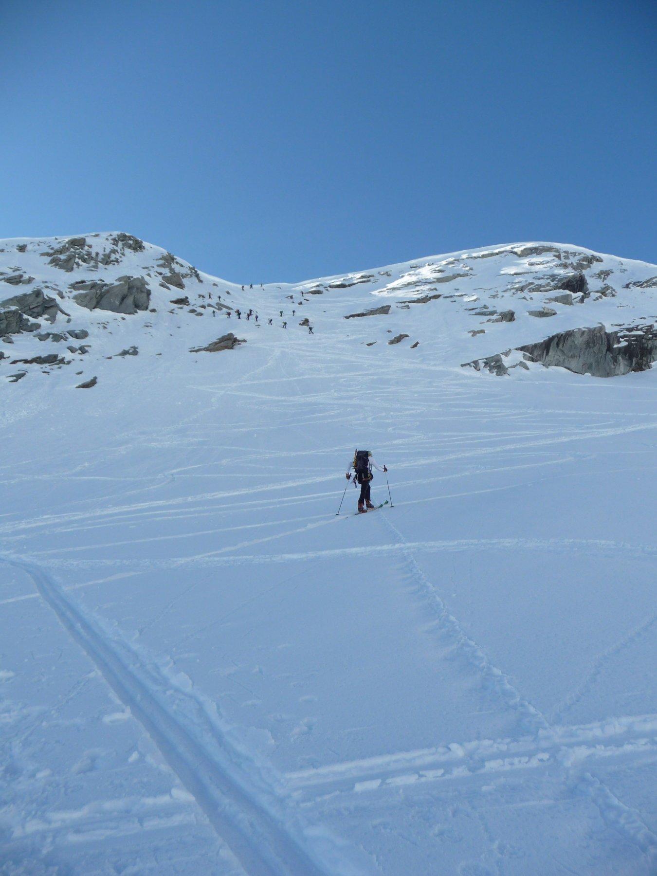 Rifugio CHABOD m 2750, salita al Gran Paradiso m 4061, discesa sul rifugio VITTORIO EMANUELE m 2732. Dislivello in salita m 1311, dislivello in discesa m 1331.