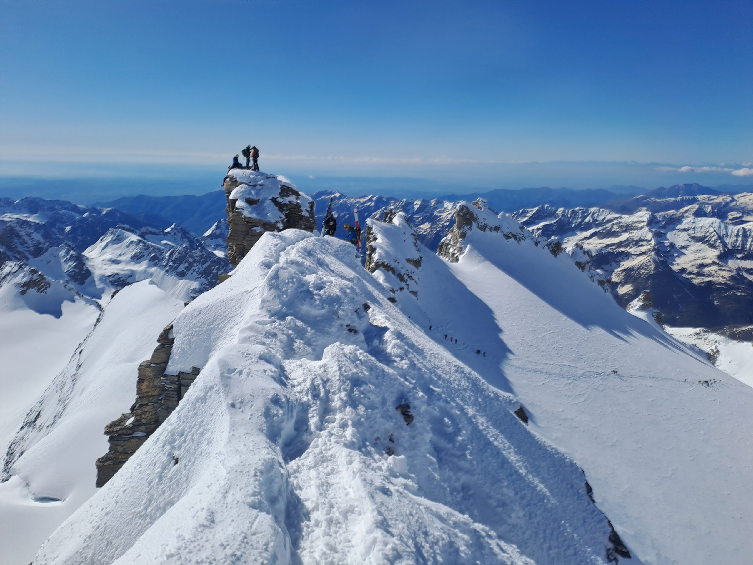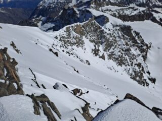 1 ora di portage dal parcheggio.Salita al Granpa dalla normale dello Chabod ( viste 20 persone sulla Nord con parte centrale in ghiaccio ma passavano di fianco a sx).Da sotto la Madonnina si prosegue in cresta verso l’uscita della Nord e poco prima a dx c’è la Est.Buone Condizioni:Primi 10 metri placche da vento poi 10 cm di farina su fondo portante per tutta la parete .Risaliti al colle Montandayne su neve non esageratamente molle e discesa su farina dura compatta .Buon innevamento generale crepacci ben chiusi,tanta gente a piedi.
