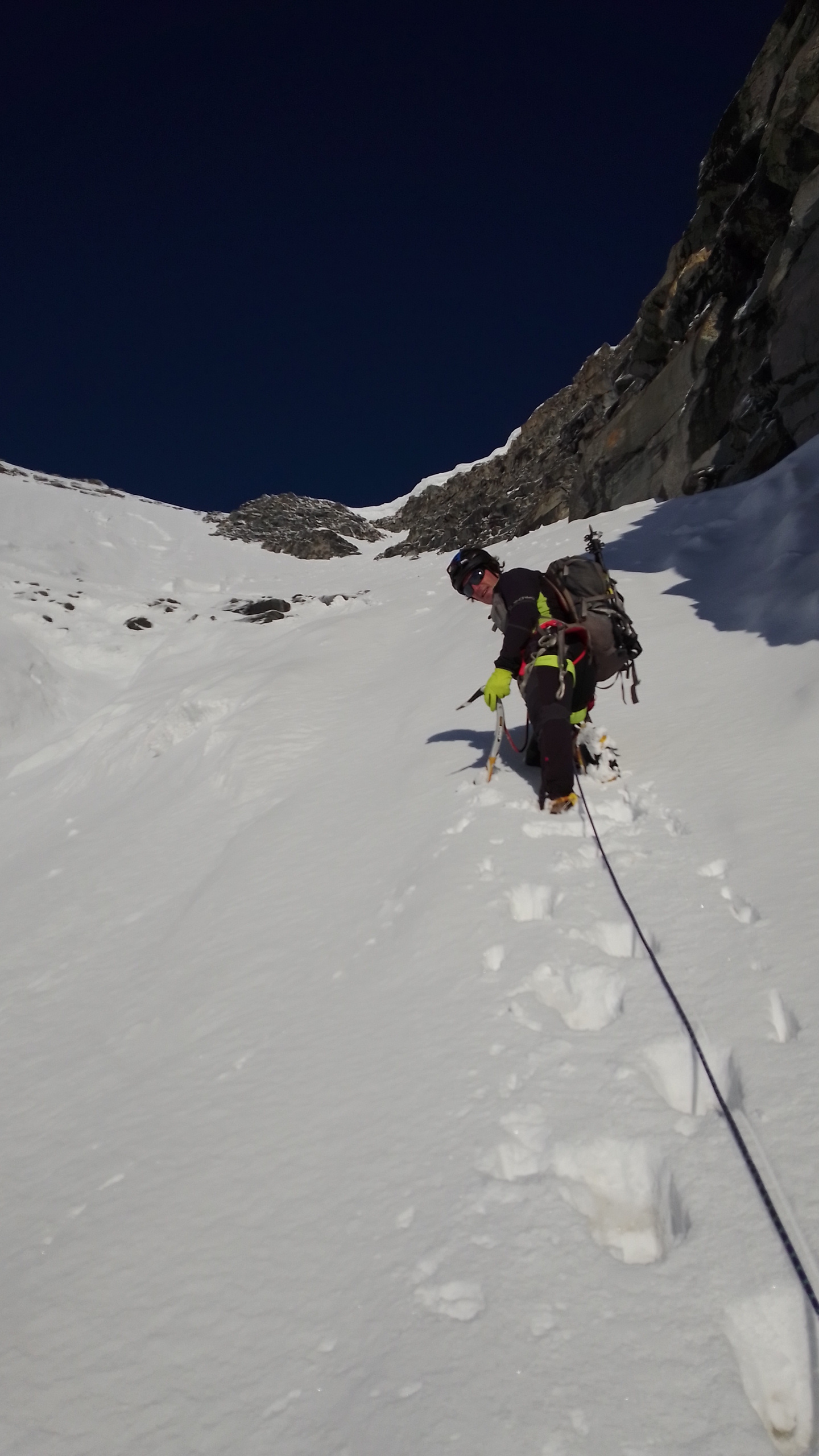 Le difficoltà della parete sono moderate, ma comunque da non sottovalutare a seconda delle condizioni. La gita è da fare anche solo per l’ambiente selvaggio e isolato, su uno dei versanti alpini meno frequentati d’Italia. Una montagna completamente diversa da quella che si è soliti salire dalla normale.