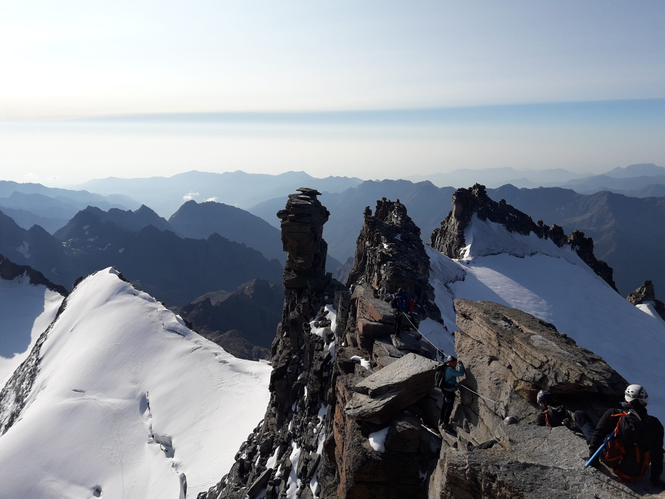 Partiti dal Vittorio Emanuele alle 4.40. Arrivati in cima in circa 4 ore, soste comprese. Tantissime cordate lungo l’itinerario che ha portato a delle soste per coda sulle roccette finali. Bellissima ed emozionante giornata con vista mozzafiato. Pernottamento al Vittorio Emanuele con ottima accoglienza.