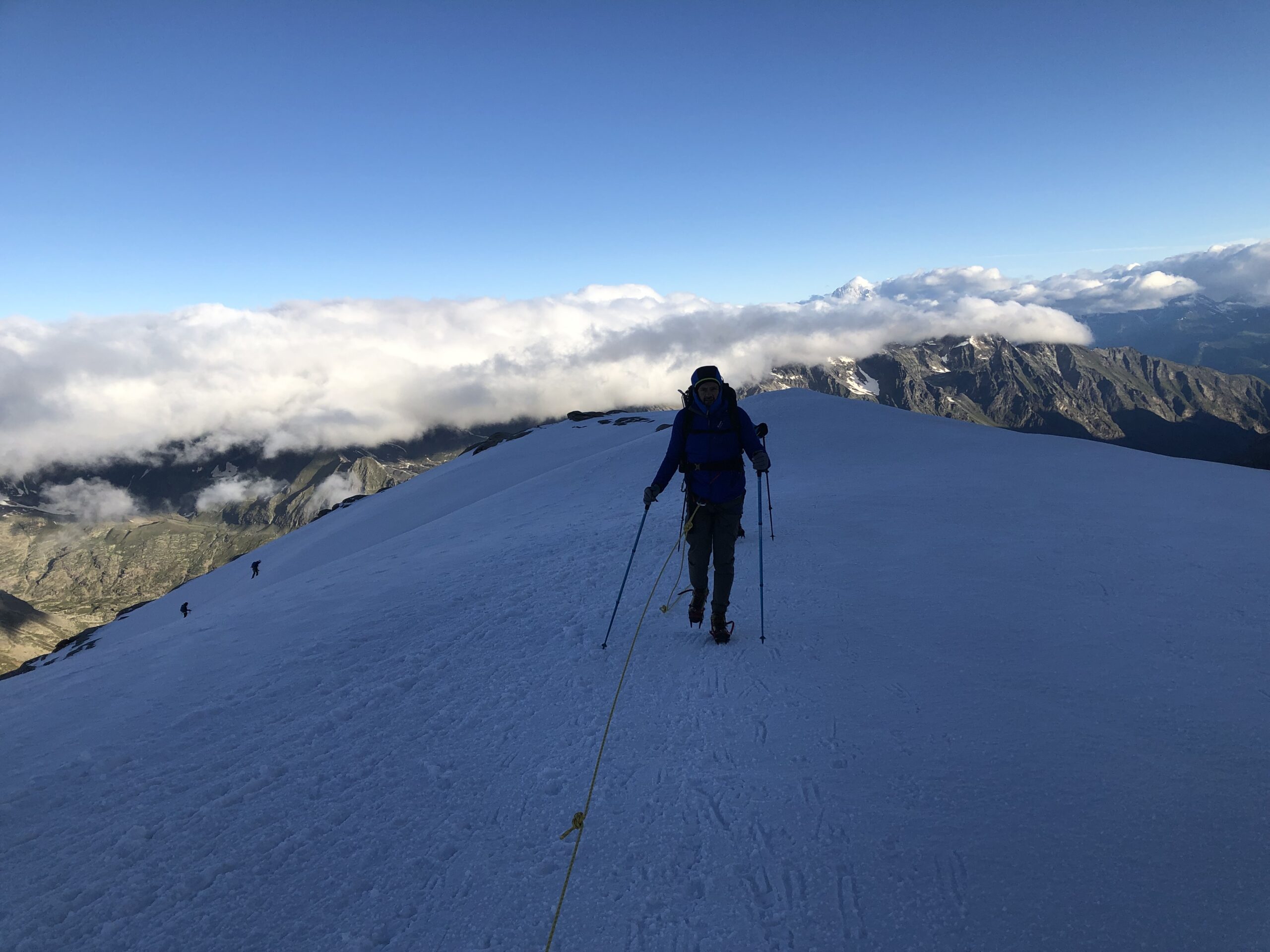 Ghiacciaio ancora ben coperto. Si cominciamo appena ad intravedere un paio di crepacci.