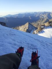 Fatta in giornata da Pont, partenza alle 3 e arrivo in vetta alle 8:30 passando per la ferrata. Sempre evidenti i crepacci e terminale chiusa (e menomale, dato che la scala non gode di ottima salute). Discesa per la via nuova, ottimamente segnata. Nessuna difficoltà oggettiva da segnalare, occorre solo prestare attenzione al verglass nella parte alta della ferrata.