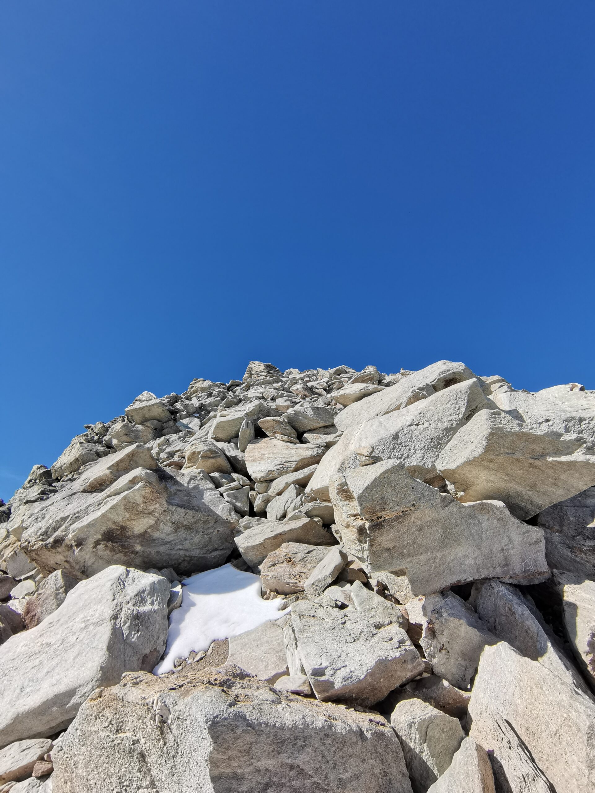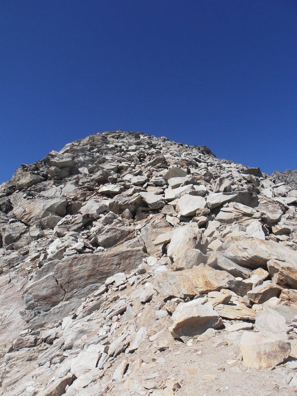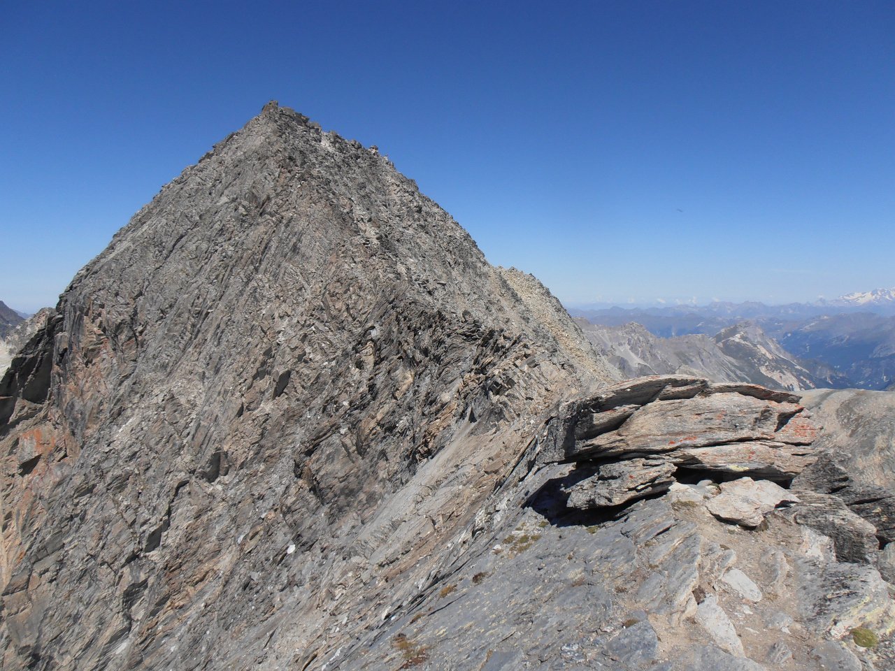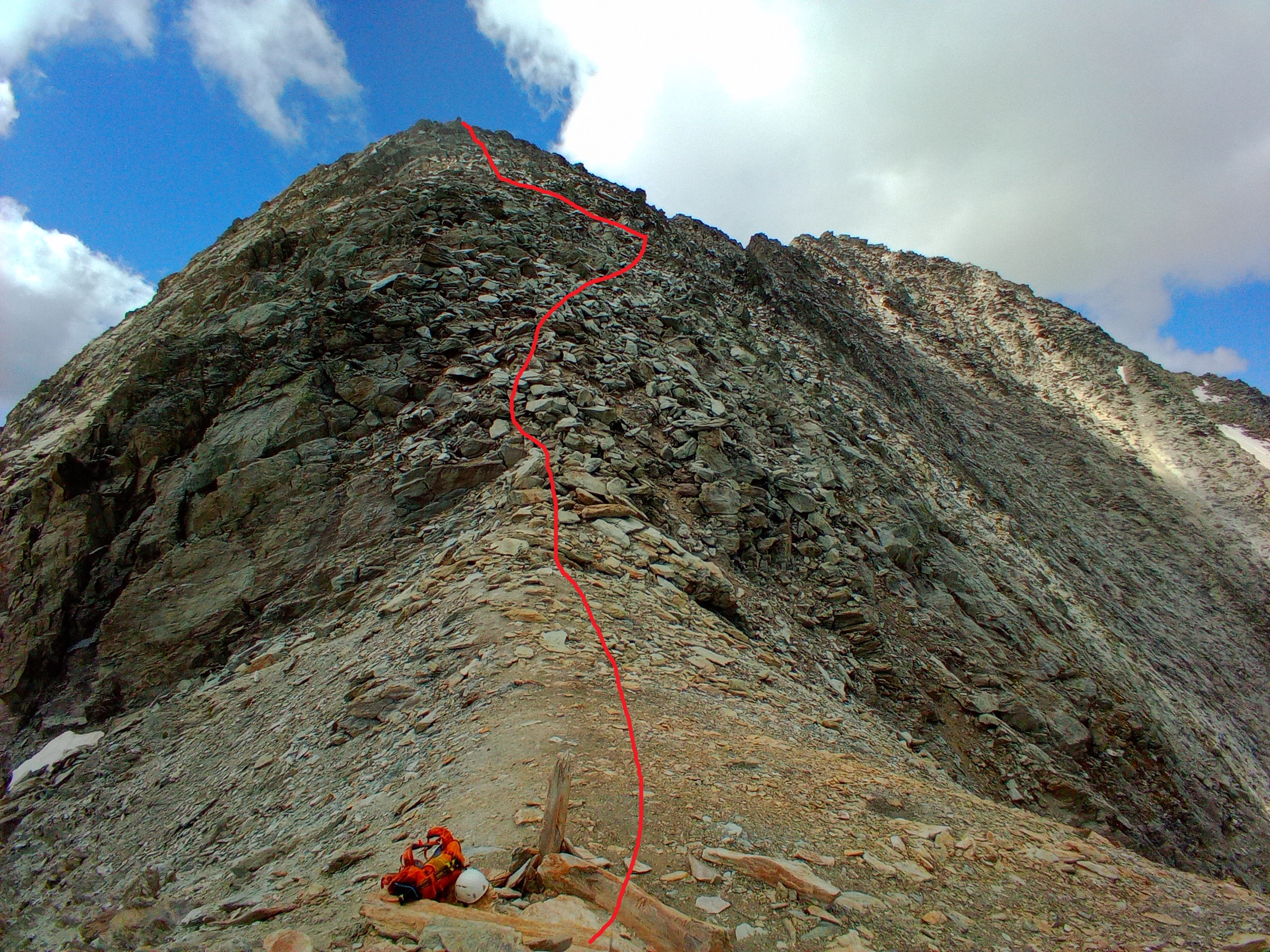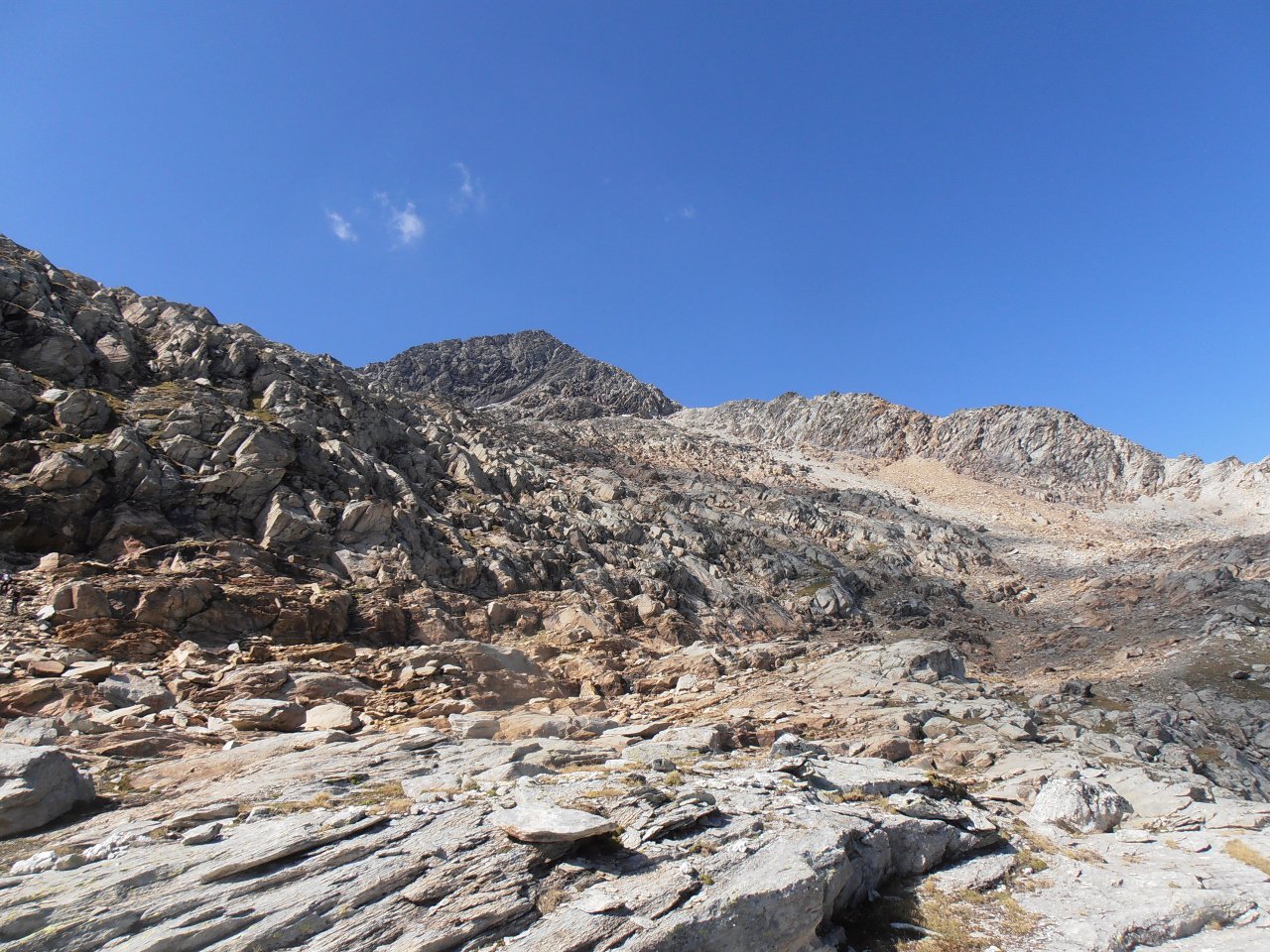 Dal parcheggio sotto la Diga di Plan d’Amont, si segue la stradina di servizio raggiungendo subito lo sbarramento, e poi si inizia a costeggiare la diga stessa sul versante sinistro; con andamento pianeggiante o quasi si raggiunge l’estremità opposta, verso l’immissario, dove un paio di tornanti nei pressi di una barriera rocciosa, portano ad un ripiano erboso dove si trova il Pont de la Sétéria 2208 m. Qui si tralascia il sentiero che attraversa il ponte (condurrebbe al Refuge du Fond d’Aussois e altre mete) per proseguire invece a sinistra per il Col de la Masse (paline indicatrici). Il bel sentiero sale in una valletta di erba e rododendri, per poi guadagnare un dosso erboso molto panoramico sulla diga sottostante. Si prosegue in direzione ovest, fino a raggiungere il torrente che va attraversato su delle pietre (con molta acqua il guado può risultare difficoltoso). Si prosegue nella valletta e poi per serpentine si sale il pendio erboso sovrastante, fino a giungere ad un piccolo pianoro sotto una bastionata rocciosa. Qui si volge a sinistra, salendo un pendio di detriti (nevai abbastanza ripidi a inizio stagione) solcato da una traccia di sentiero abbastanza marcata. Si guadagnano così gli spalti rocciosi di un antico ghiacciaio, e aggirando le rocce rossastre si perviene quindi al Col de la Masse 2922 m. dal colle si prosegue a destra lungo un sentierino non segnalato (ma ben indicato da numerosi ometti) che inizia a risalire una dorsale inizialmente detritica e poi rocciosa, che gradualmente si fa più ripida che porta ad un ben visibile colletto alla base della cresta SE del Grand Roc. Ci sono tratti di sentiero alternati a facili roccette, e nel tratto finale si supera un ripida rampa-canale detritica che porta al colle senza nome di quota 3200 m. Si volge ora sinistra e si risale l’ampio crestone SE del Grand Roc, ci sono due possibili linee di salita : 1) tenendosi a sinistra si possono salire i gradini rocciosi e i pietroni che con facile arrampicata portano direttamente al grande ometto di pietre posto sulla cima. 2) dal colletto si sale inizialmente piegando prima a destra (per evitare i primi gradoni rocciosi della cresta) e poi a sinistra, seguendo una traccia di sentiero che sfrutta cengette, canaletti e facili roccette, con varie diagonali fino a portarsi sotto il risalto roccioso terminale, che si supera agevolmente a sinistra, raggiungendo infine la cima. (ore 3.30 / 4.00 indicative dalla diga di Plan d’Amont alla cima). In discesa si segue a ritroso lo stesso percorso di salita.