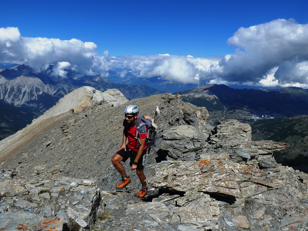 Anzitutto grazie a chi ha inserito l’itinerario “estivo” per questa cima che non passa inosservata per bellezza e maestosità appena si scollina il Sestriere in direzione Cesana. Parte bassa della salita su buon sentiero, ripido, sino alla falesia, dopo di che si entra nella pietraia del canalone nord per sbucare sui dossi erbosi superiori (q. 2300). Di qui su per il Gran Vallon, con la grande pietraia finale che arranca su terreno instabile sino al colletto. Raggiunto questo si guadagna la cima alternando gli sfasciumi dei canaletti che solcano la paretina finale a qualche passo di facile arrampicata.