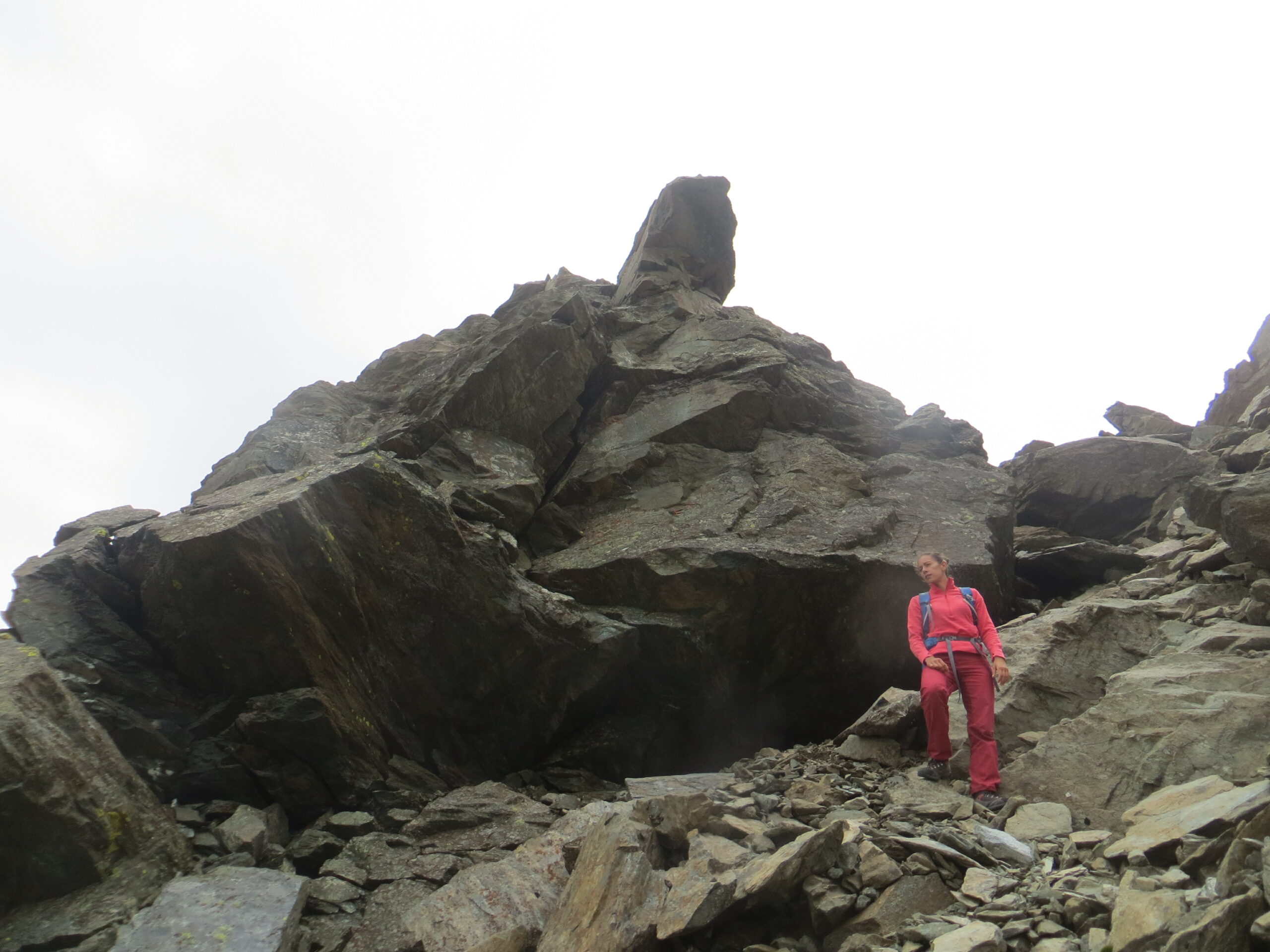 Siamo saliti da Tsapy – Lago Raty – Col Pisonet – Cresta Est. La cresta Est è molto lunga. All’andata siamo saliti dal Col Pisonet e bisogna raggiungere la prima vetta per poi scendere in un valloncello che percorre all’interno la Dorsale Est. Infine si risale sulla cresta di sx (dx orografica) che si segue fino in vetta. Conviene senz’altro invece non raggiungere il Col Pisonet e salire o per la dorsale precedente (che poi sarebbe proprio quella che arriva in vetta) o per il valloncello immediatamente successivo (che sarebbe quello che solca la dorsale). Noi abbiamo seguito questa via in discesa ed è molto migliore che seguire integralmente la cresta Est da Col Pisonet.