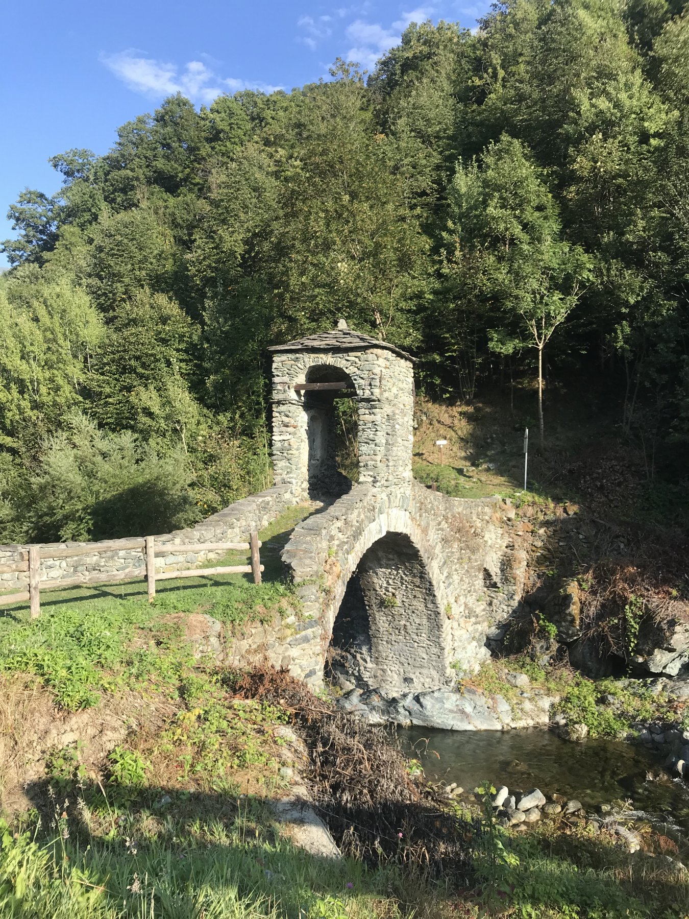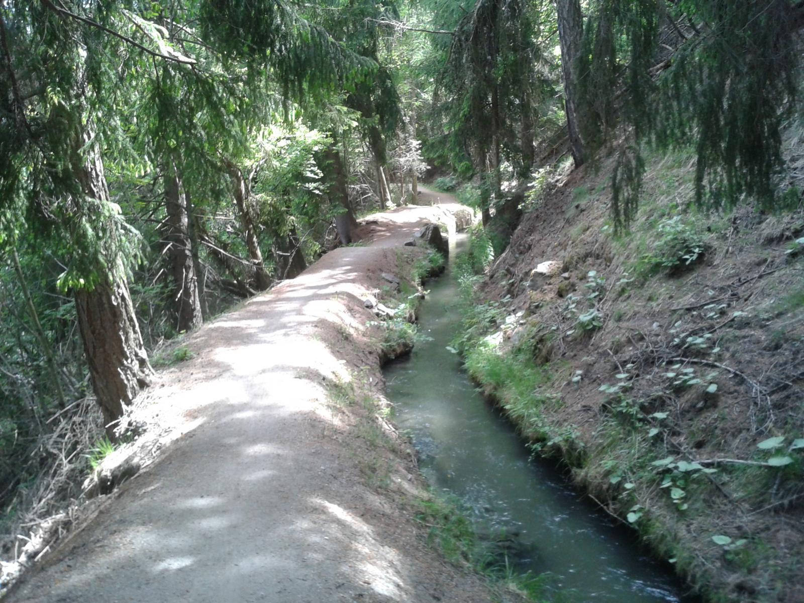 Passato Etroubles appena prima del paravalanghe si prende sulla destra una sterrata (sentiero TAM). Questa sterrata percorre tutto il ru, costeggiandolo in leggera discesa fino a sopra Arpuilles.