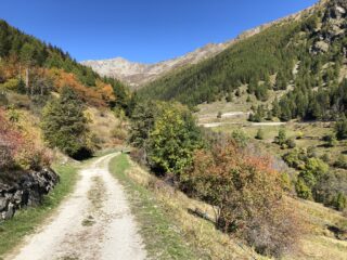 Un sentiero porta fino a Cerisey. Da li si continua fino al campo sportivo e poi si prende il percorso vita fino a Etroubles.