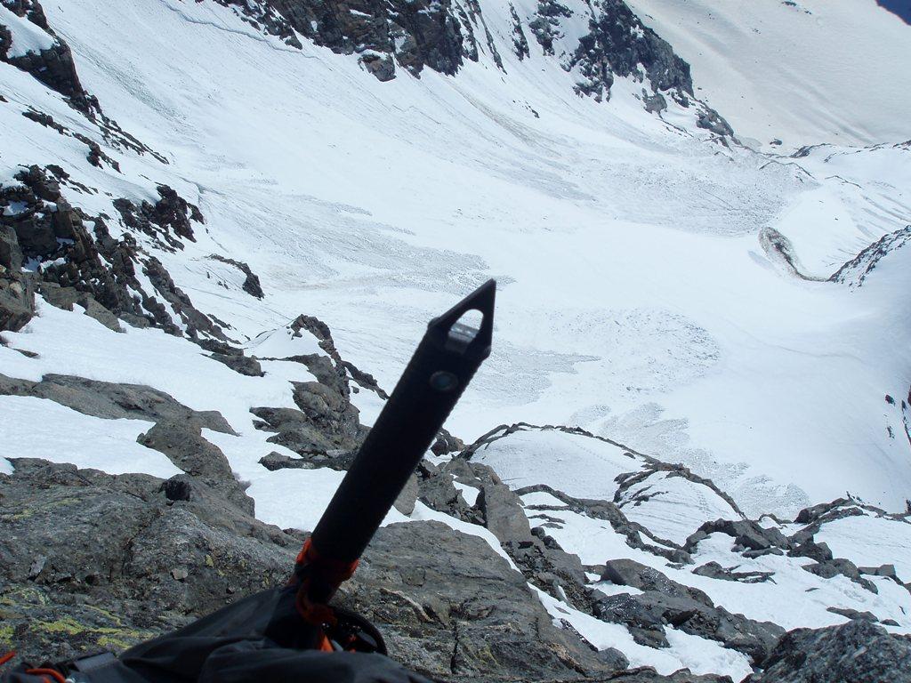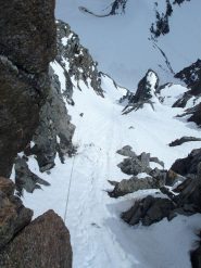 siamo scesi nel canale dal lato della Valleile e poi proseguito la discesa con picozza e ramponi.