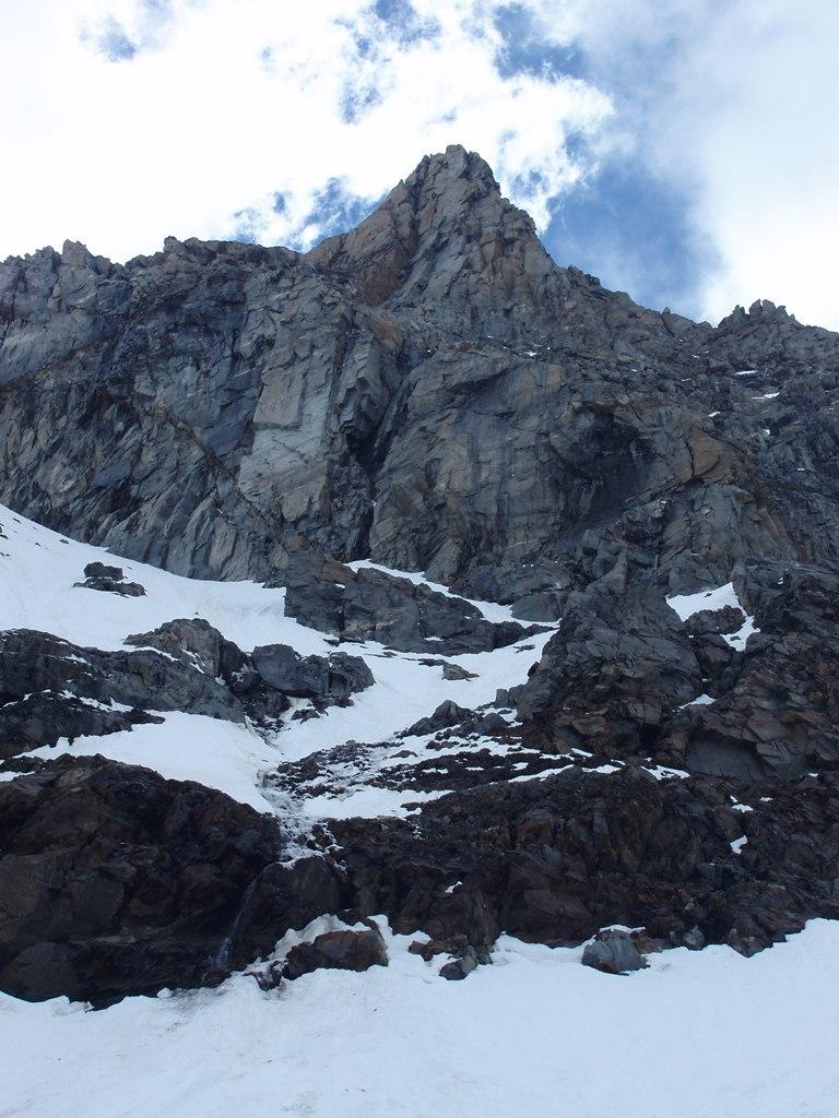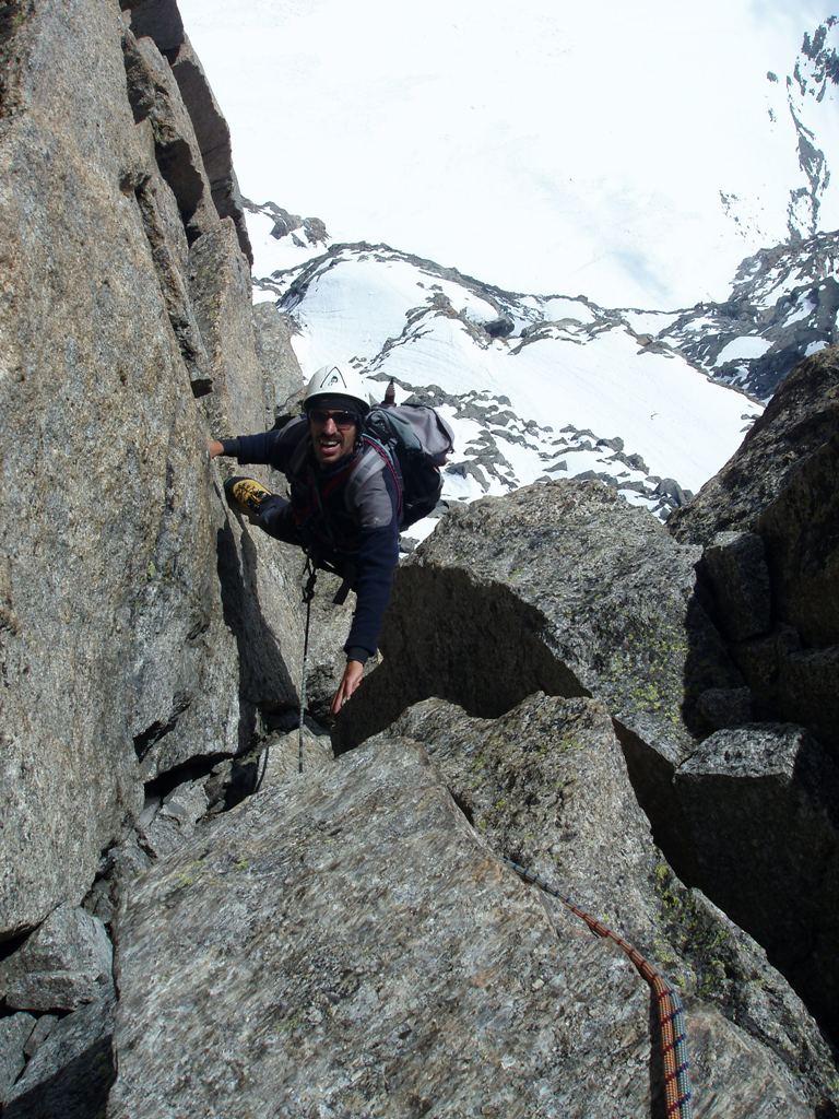 La via si trova a destra della già descritta cresta est sud est . In realtà volevamo fare quella ma ci siamo accorti subito, dalle difficoltà incontrate, che l’avevamo cannata. Così abbiamo salito la parte che ci pareva più bella.