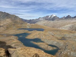 Ho fatto la traversata in senso inverso, salendo al colle Rosset (escursionistico) per poi puntare alla Punta Rosset; la roccia è marcia, la salita non è difficile tecnicamente (ci sono solo un paio di passaggi di I/II, un po’ esposti), ma il rischio di perdere appoggi e appigli è enorme. Dalla cima della Rosset, la traversata alla Gran Vaudala nord è elementare ed escursionistica; un po’ meno la discesa e la risalita alla cima sud, ma non richiede capacità alpinistiche. Dalla cima sud della Gran Vaudala inizia la discesa con in mezzo le due punte di Nivolettaz, che invece sono molto esposte in alcuni tratti, soprattutto proprio nei dintorni delle cime, e richiedono doti alpinistiche. A meno che si voglia aggirarle sul lato Rhemes, perdendo una cinquantina di metri di quota. Arrivati al colle Nivolettaz le difficoltà terminano e inizia la discesa verso i laghi e il colle di partenza (ci sono solo due brevi passaggi attrezzati non esposti). Come spesso capita in questa zona, il vento mi ha accompagnato per quasi tutta l’escursione. Ero in solitaria.