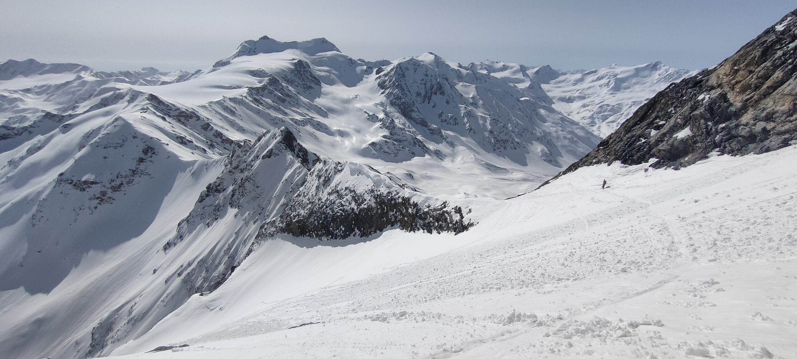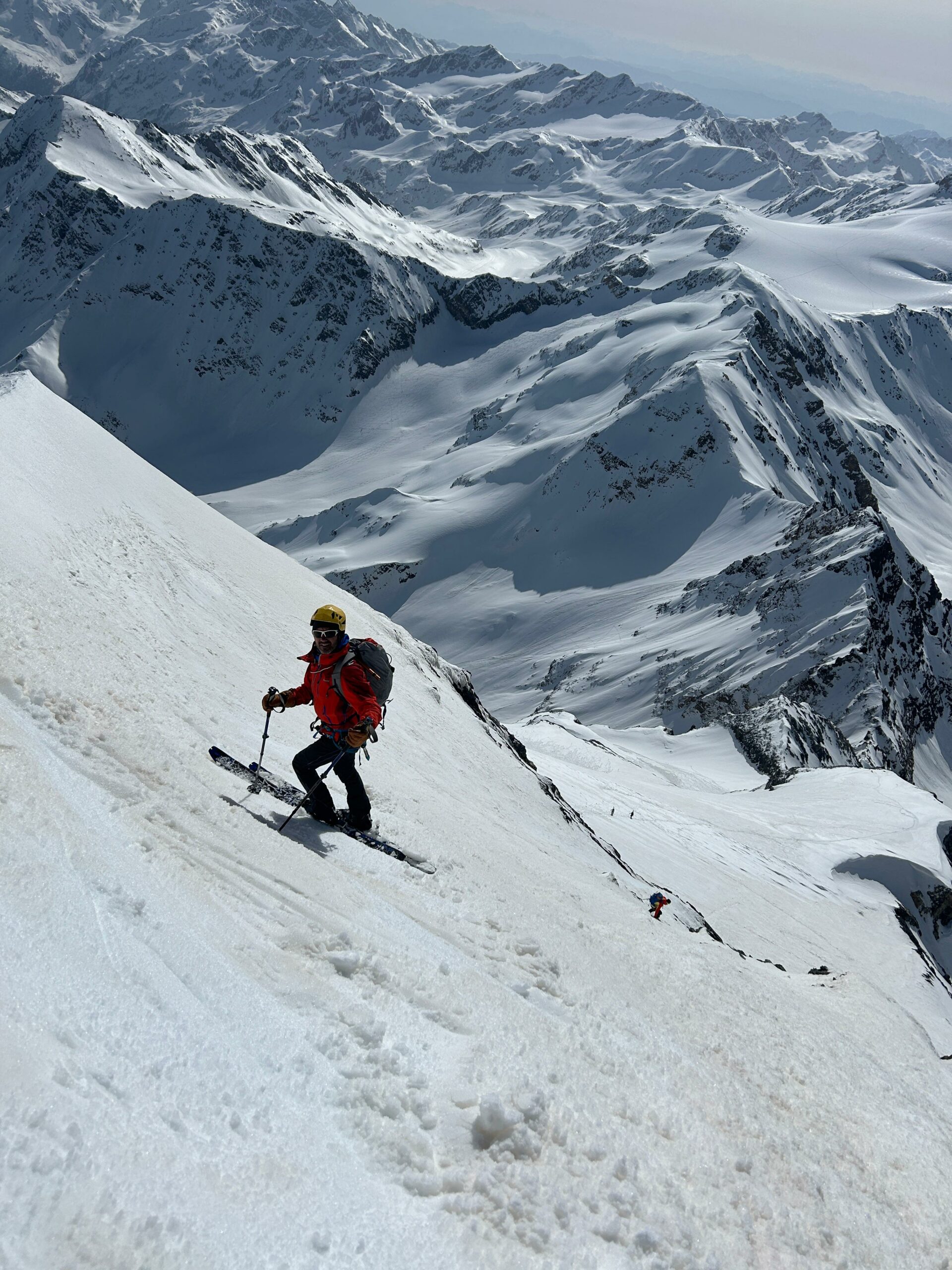 Bellissima ed estetica linea che sale da Solda fino in vetta al Gran Zebru. La salita non presenta difficolta tecniche particolari ma è importante arrivare in cima con ancora le gambe che rispondano bene visto l’impegnativa discesa.
