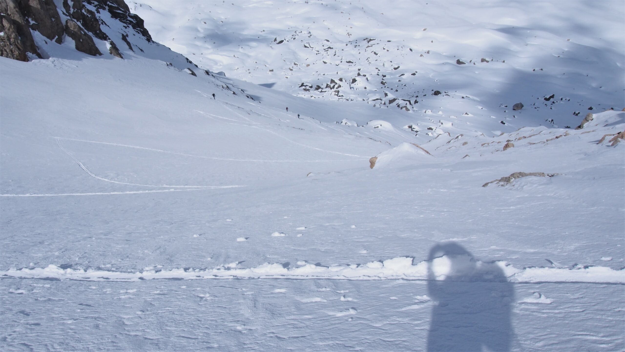 Discesa: canale su neve portante simil pressata bella e divertente, poi tagliato alto per portarci sulla crete de l’Echaillon, per far prima proseguito a piedi sulla cresta in modo da perdere meno dislivello senza dover passare dal col Cristol.