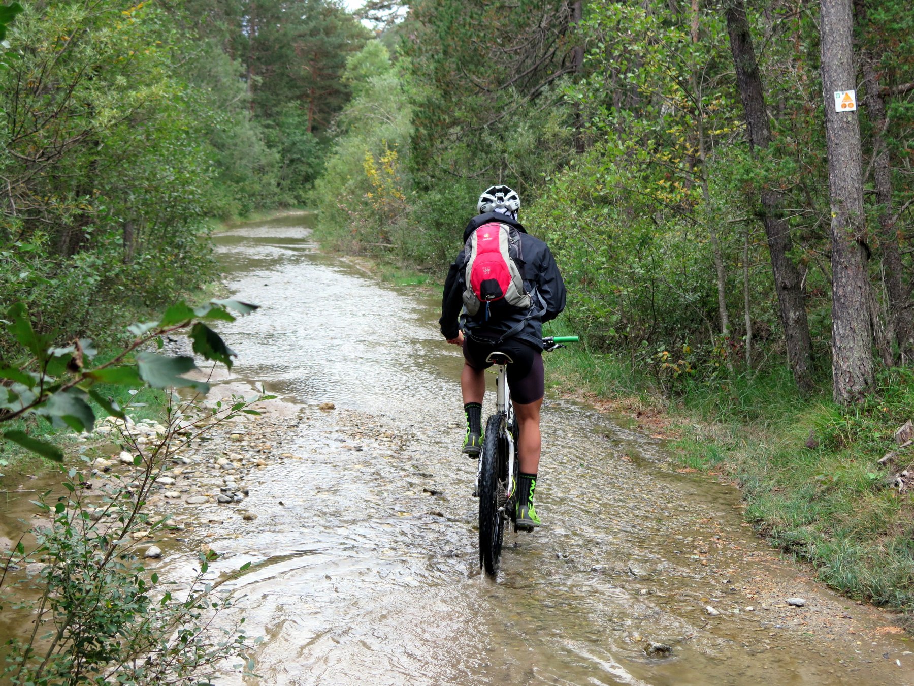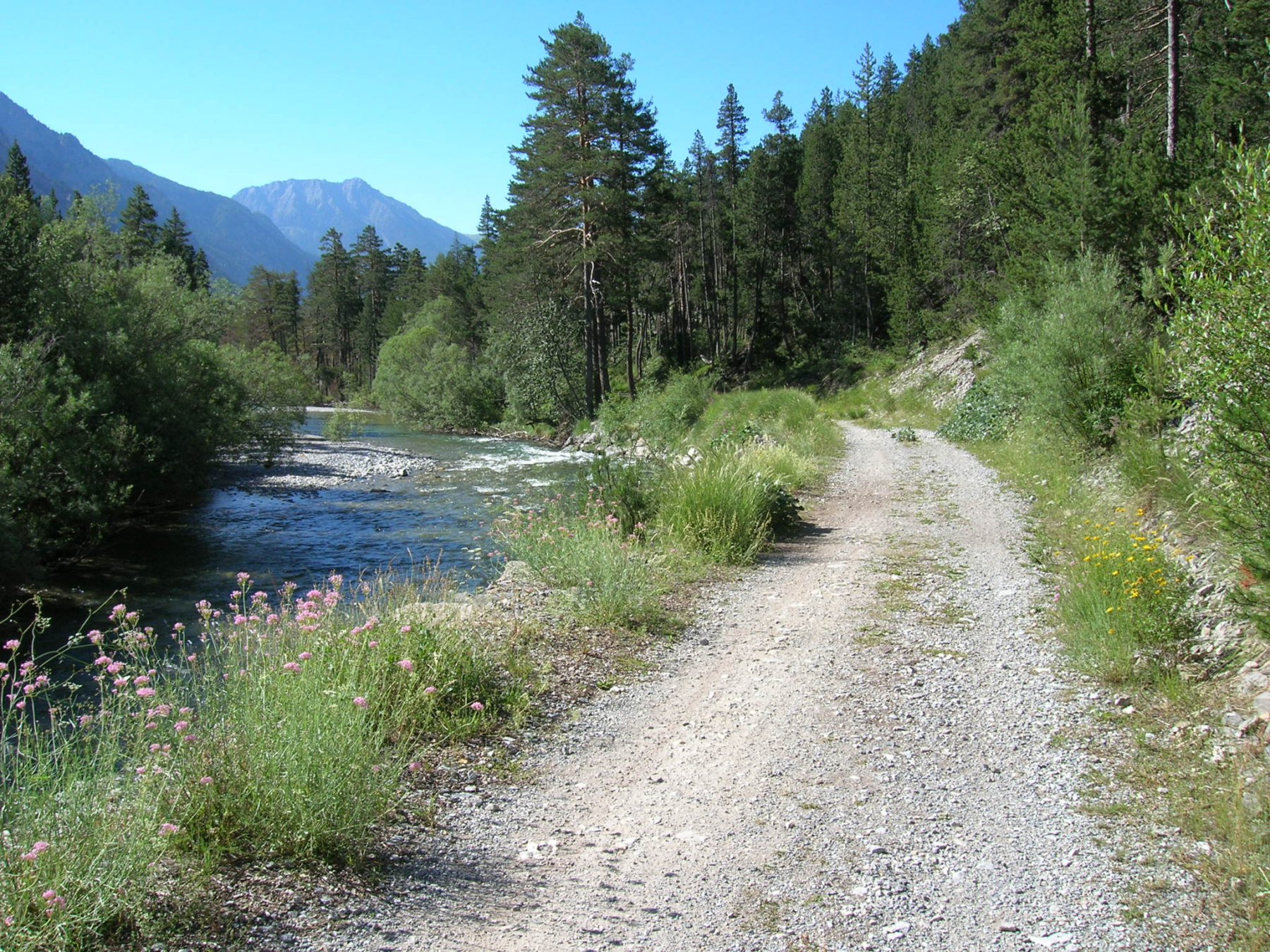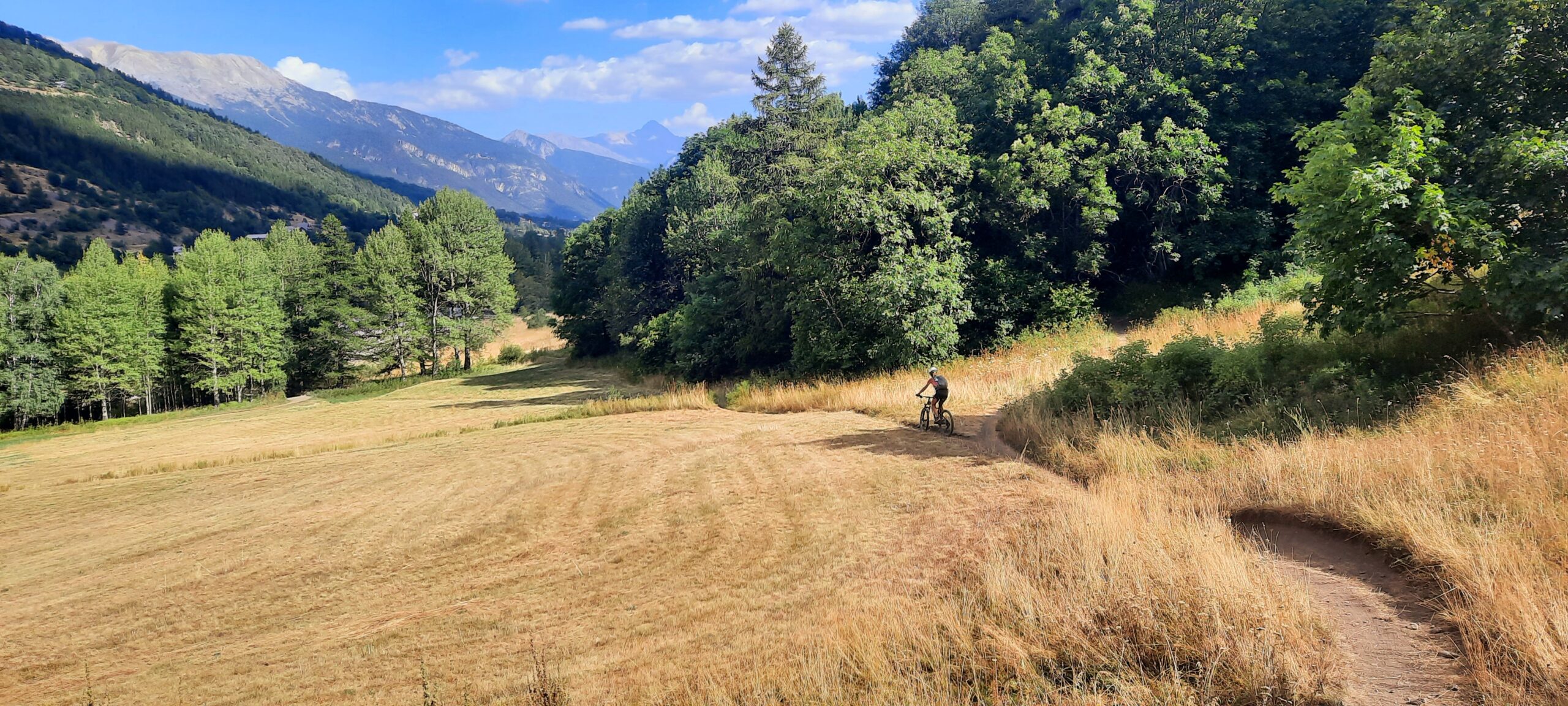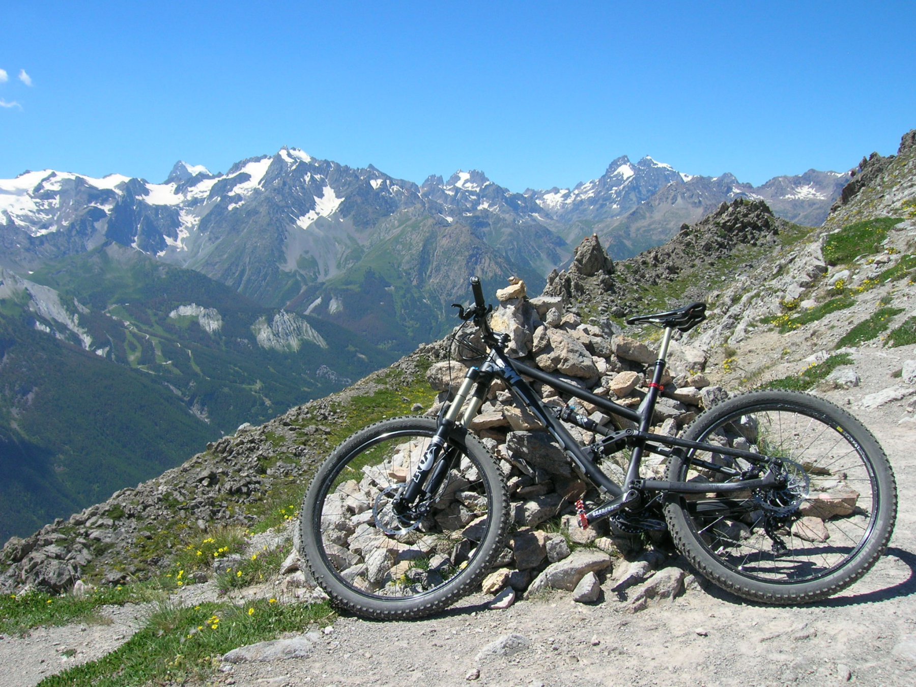 Alla prima curva quando la strada comincia a scendere,prendere lo sterrato di dx (balise Porte de Cristol) e seguirla fino a quota 2487 (balise Pointe Cot) dove si comincia a scendere sulla sx prima su sterrato molto sconnesso e poi su sentiero divertente fino a raggiungere il bivio a quota 2180 (balise Sous le Petit Arèa,circa 30 km fino a qui).