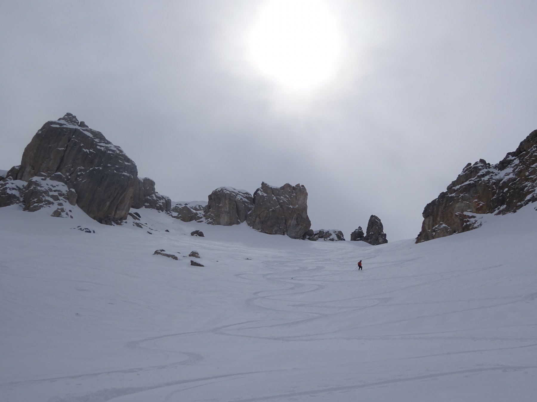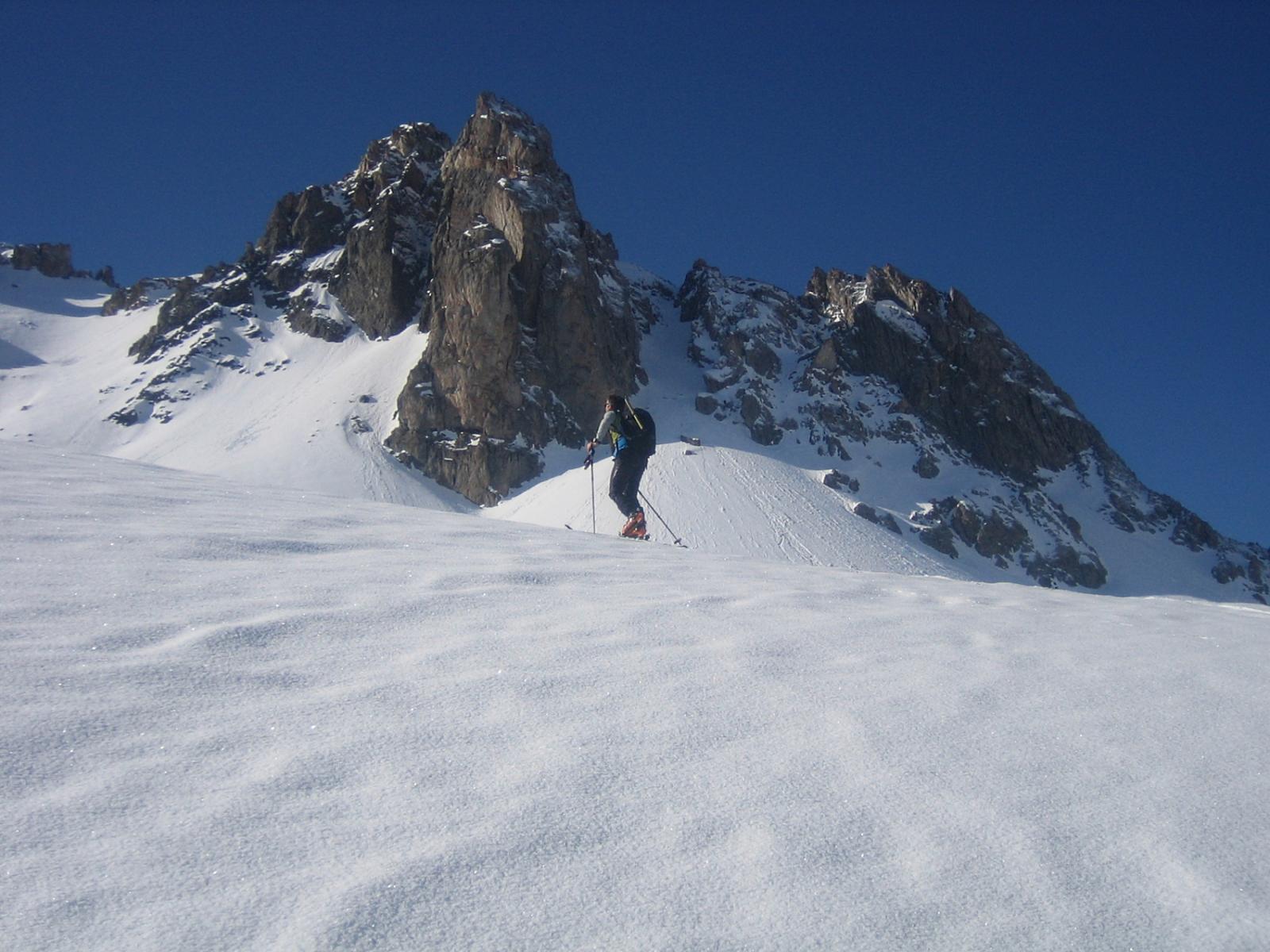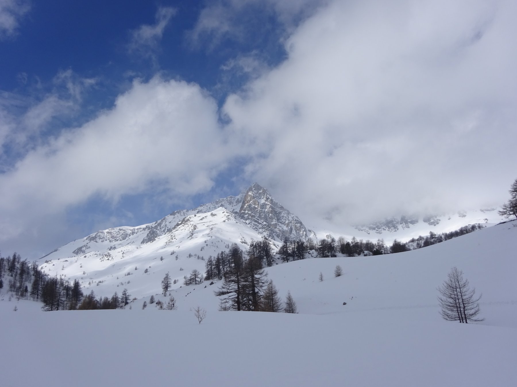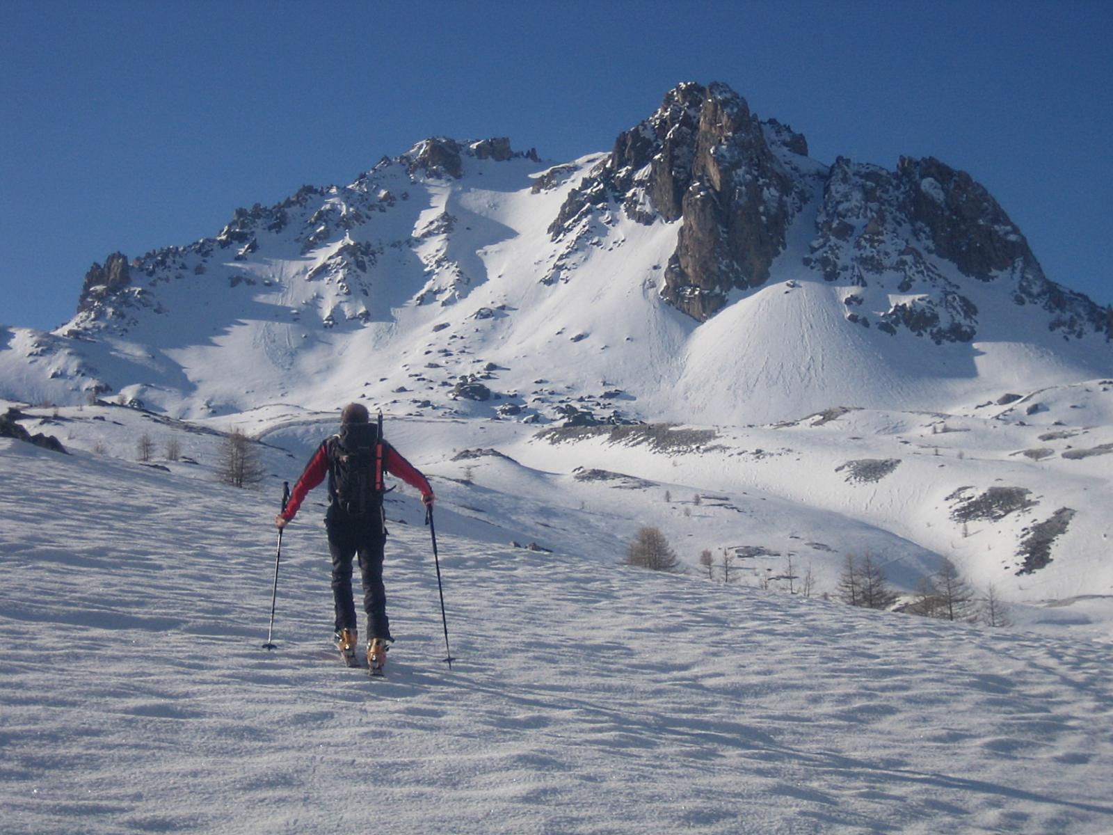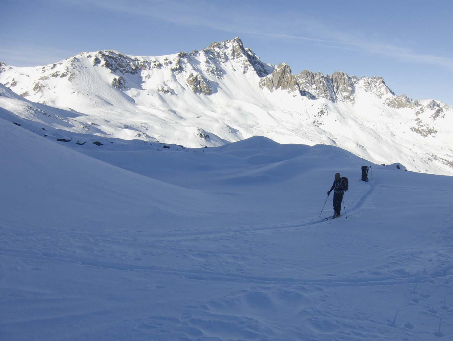 Lasciato il Pont du Rately seguire il percorso fino al rifugio in bosco ripido. Superato il rifugio pendii aperti e dolci che portano al Col de Buffere. Intorno a quota 2150-2200 dirigersi verso la base del canalone nord.