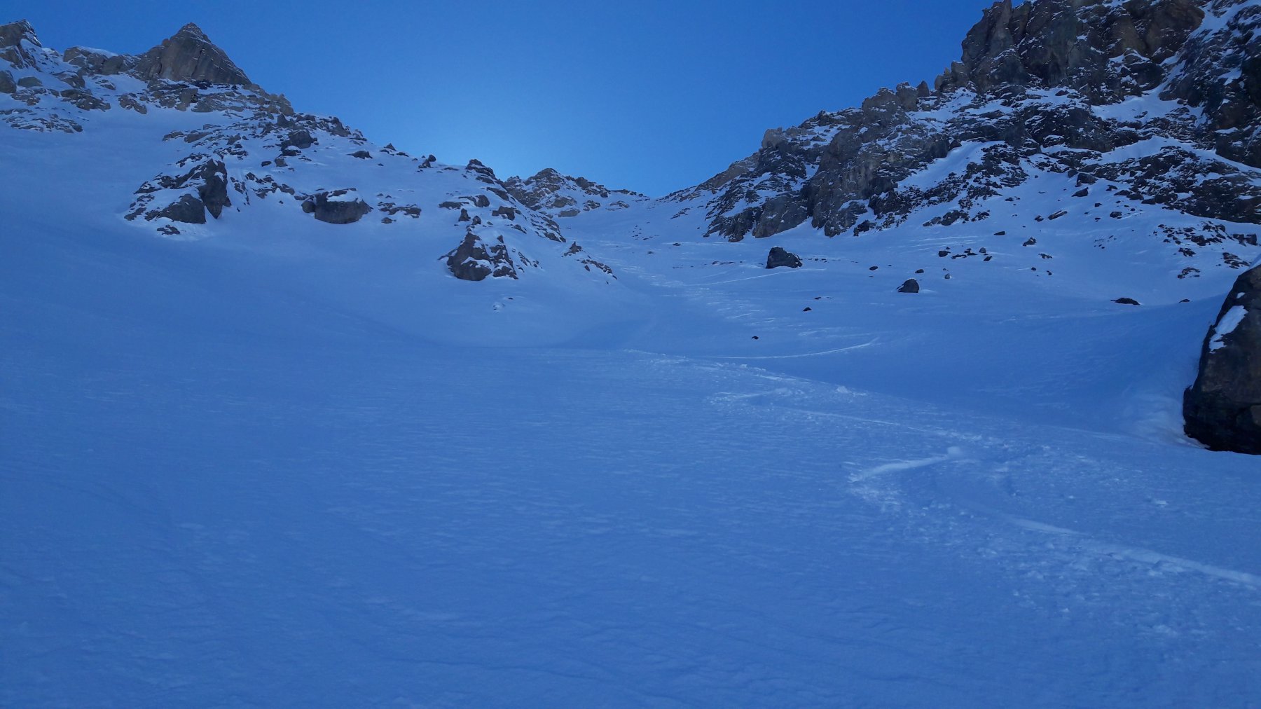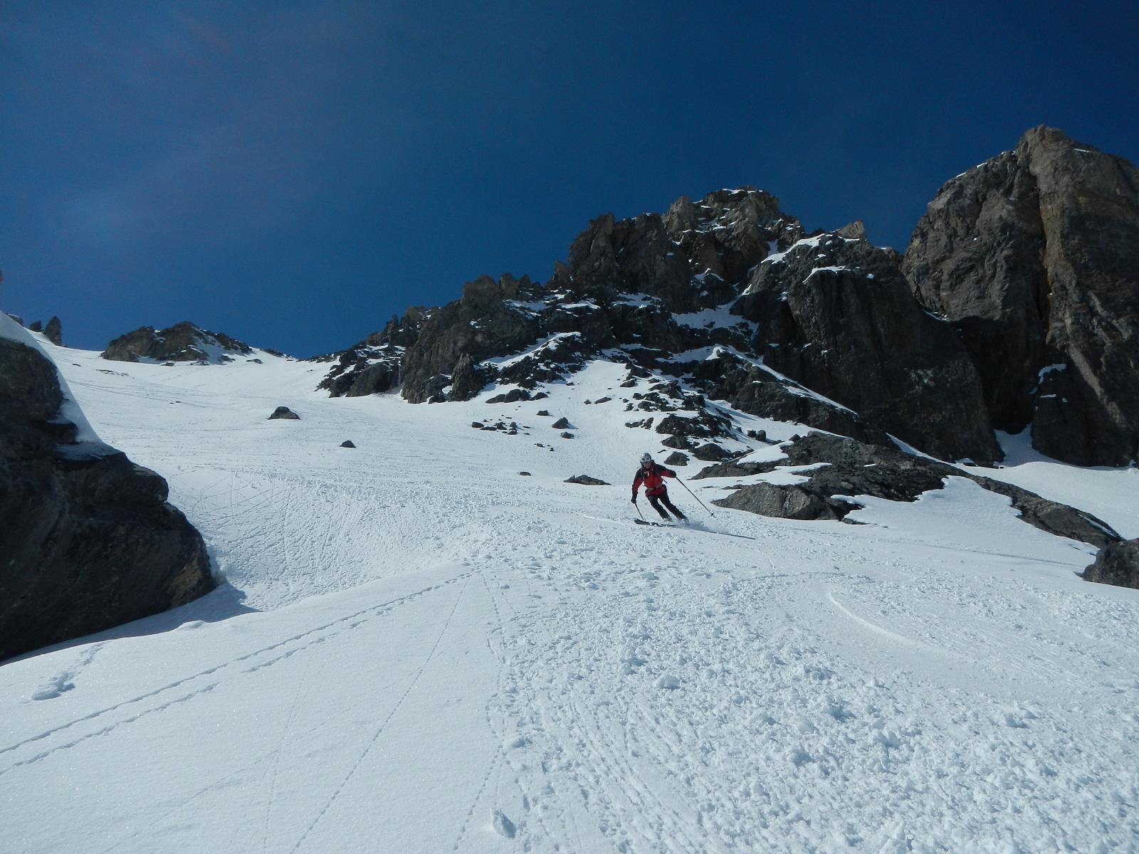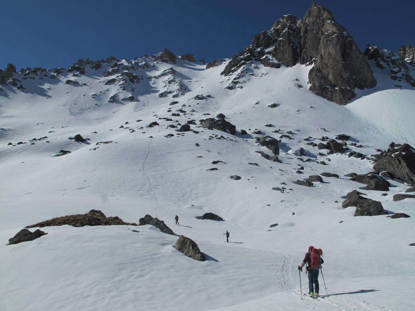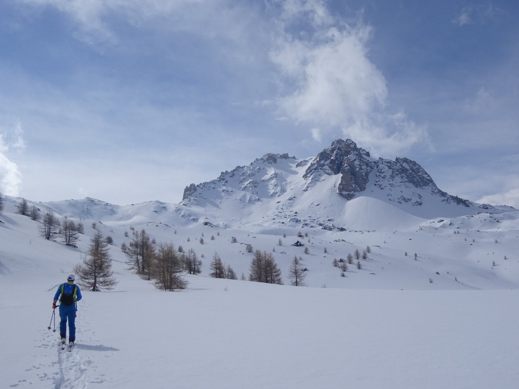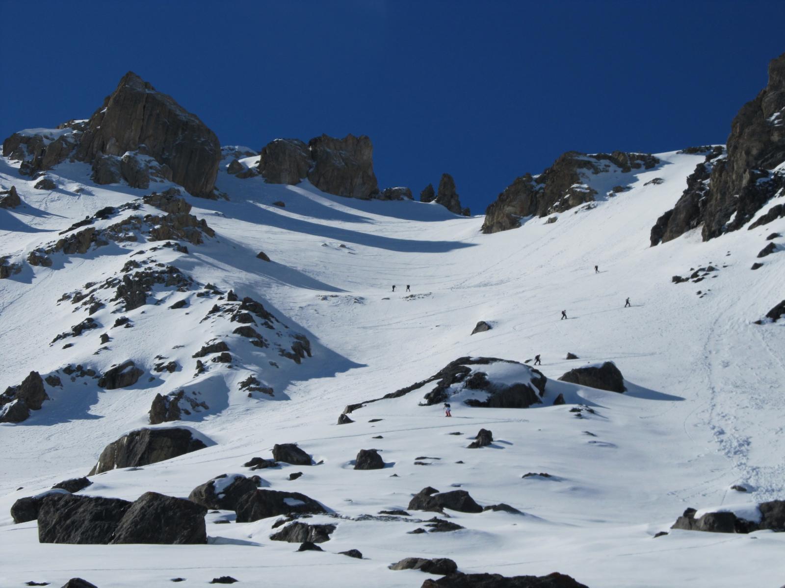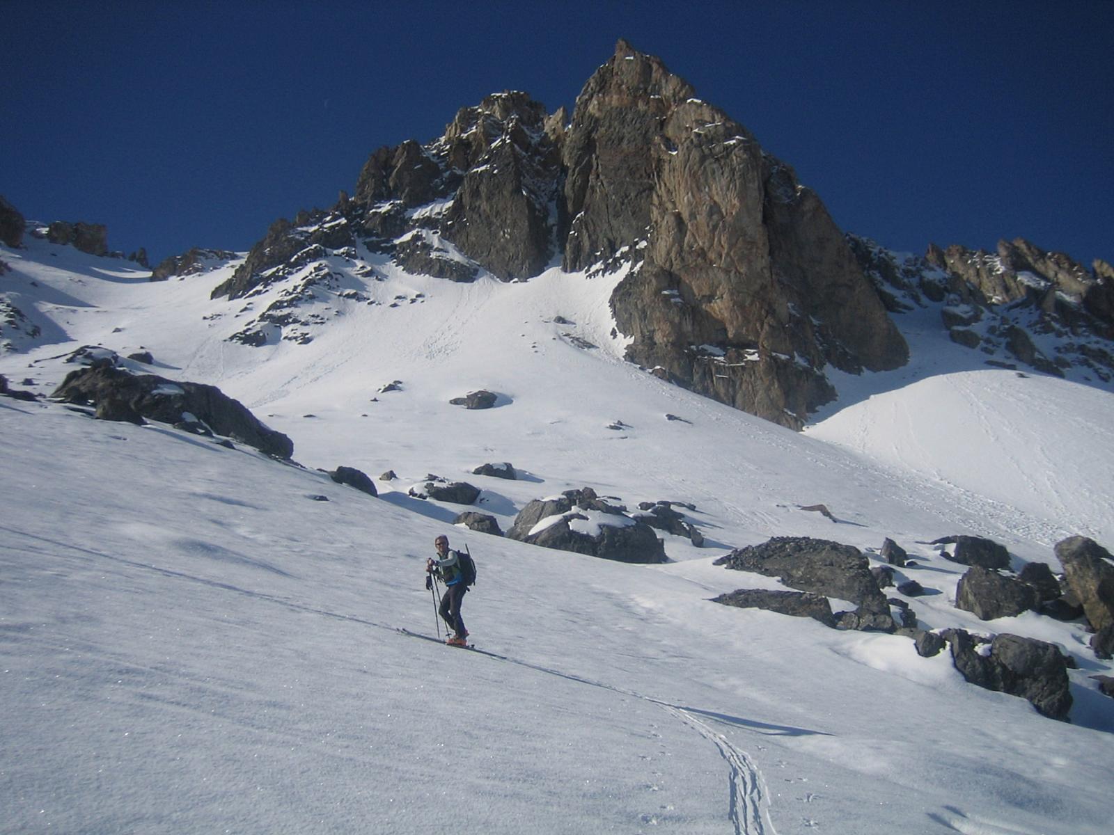 Lasciato il Pont du Rately seguire il percorso fino al rifugio in bosco ripido. Superato il rifugio pendii aperti e dolci che portano al Col de Buffere. Intorno a quota 2150-2200 dirigersi verso la base del canalone nord.