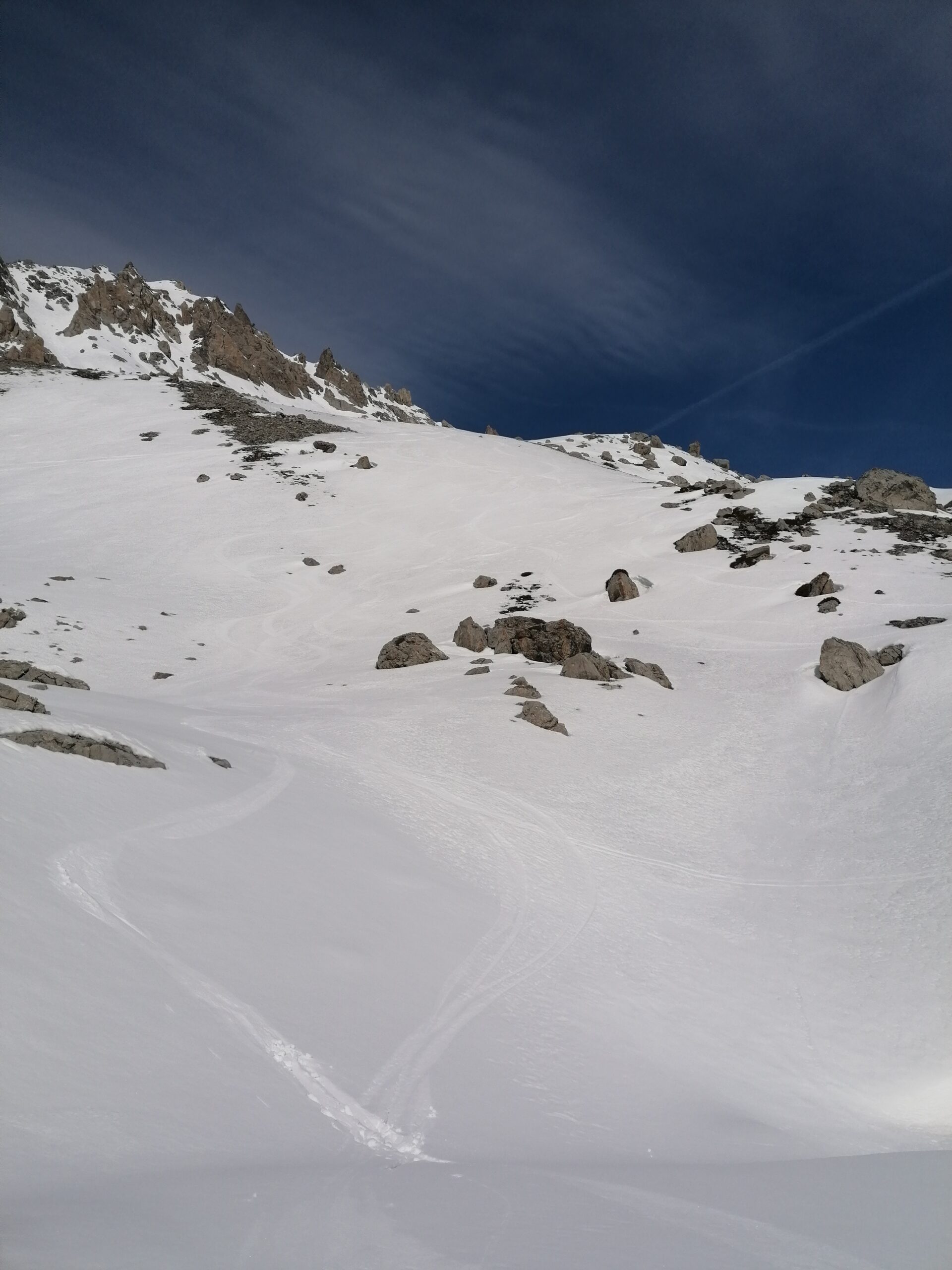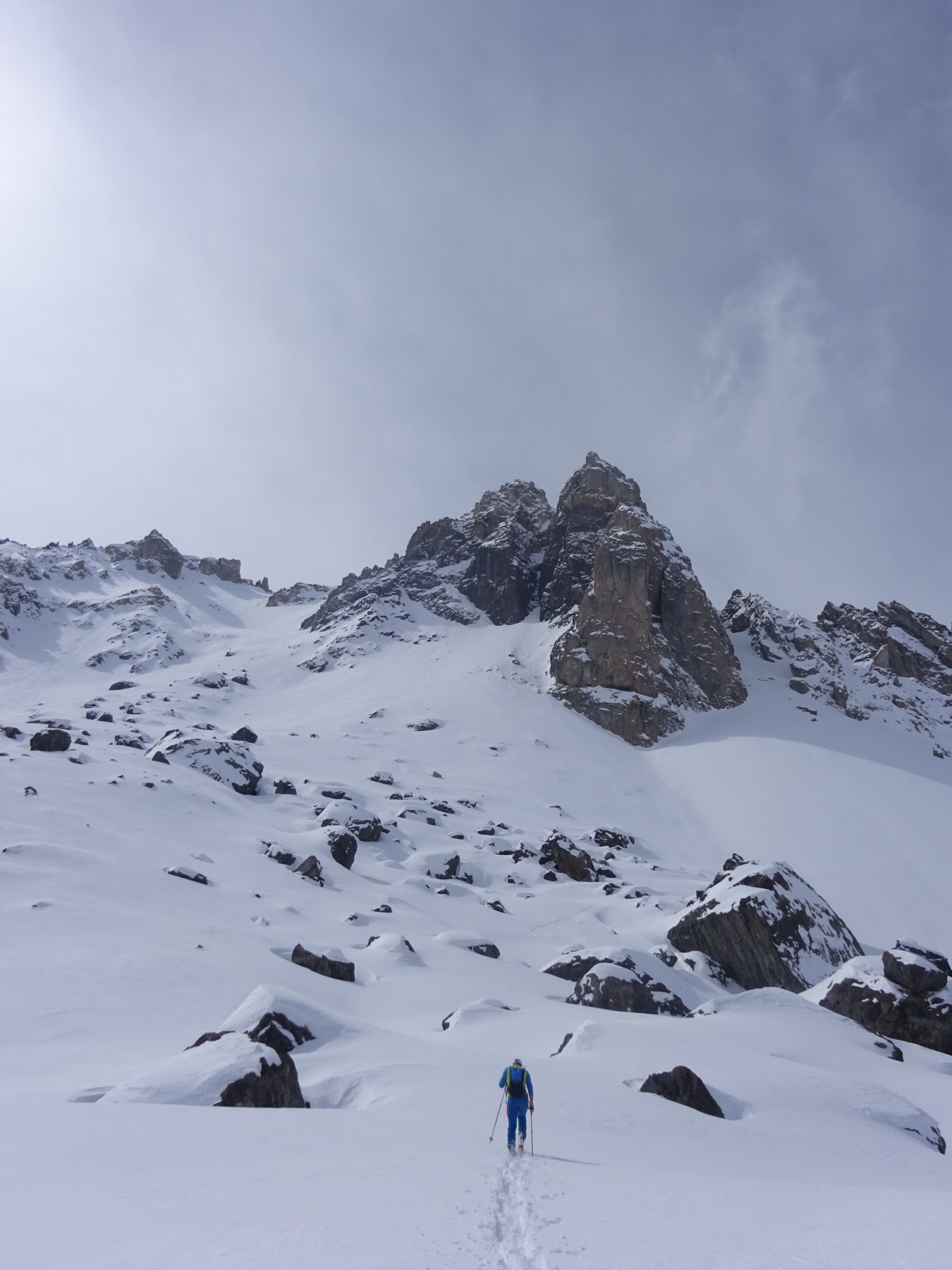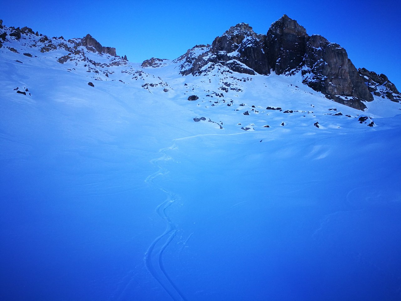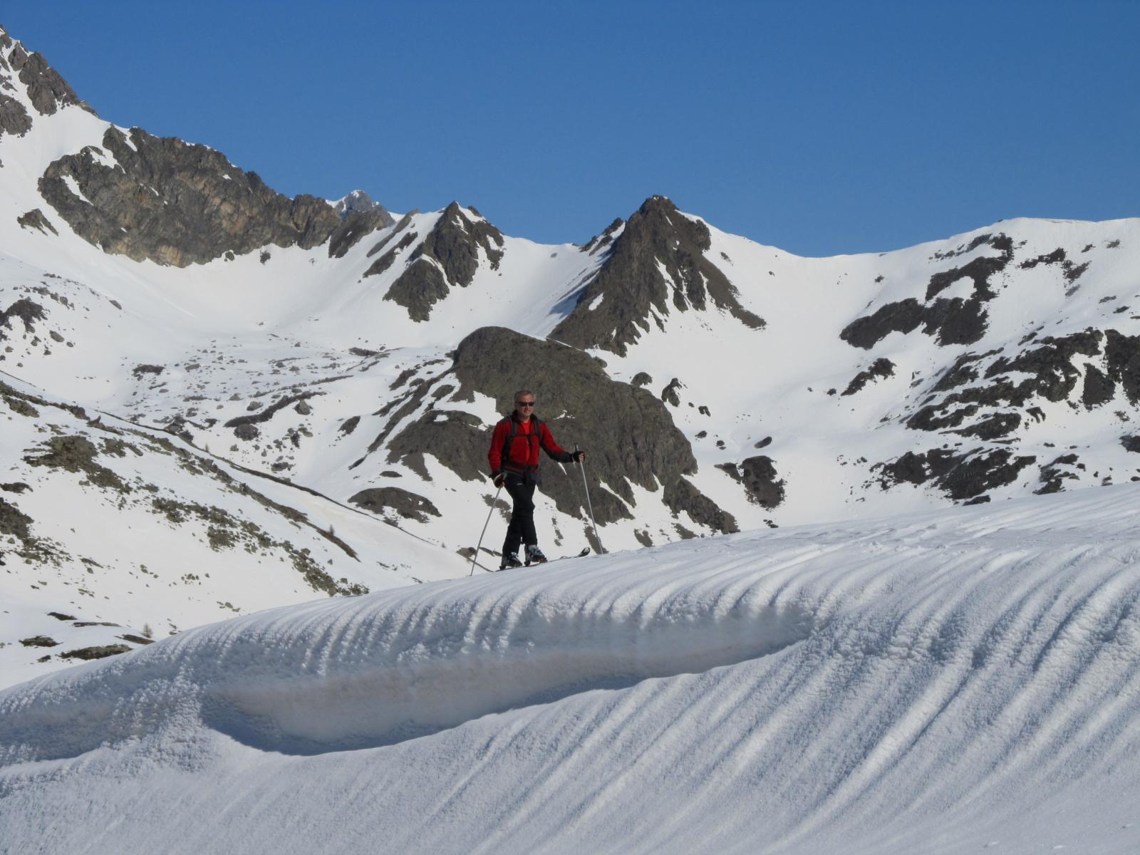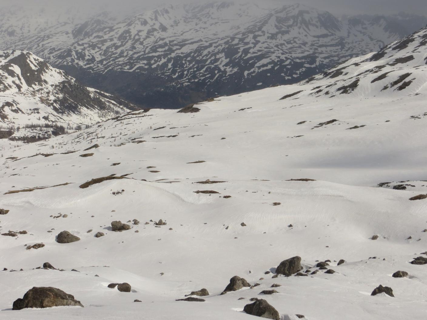 Lasciato il Pont du Rately seguire il percorso fino al rifugio in bosco ripido. Superato il rifugio pendii aperti e dolci che portano al Col de Buffere. Intorno a quota 2150-2200 dirigersi verso la base del canalone nord.