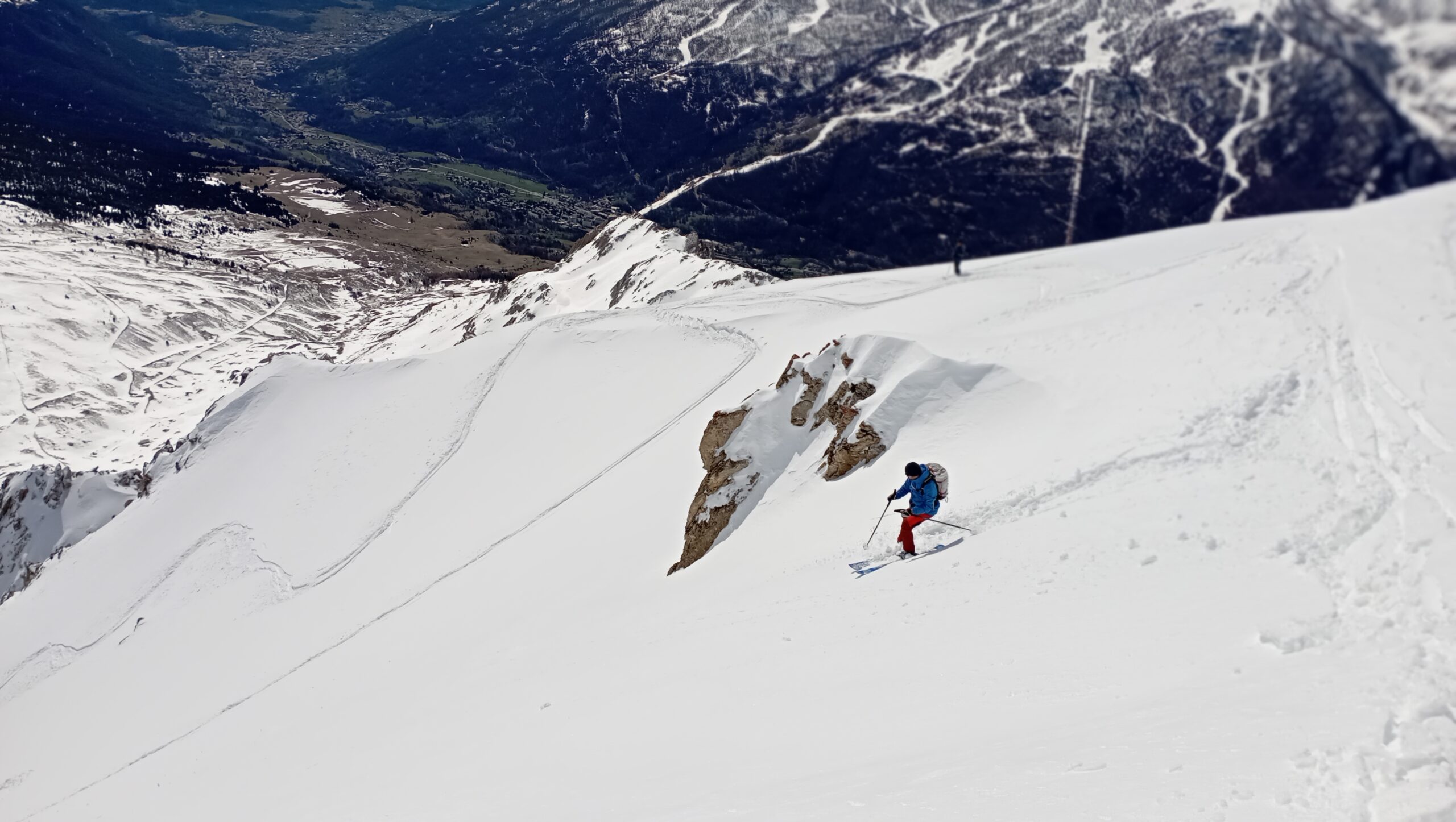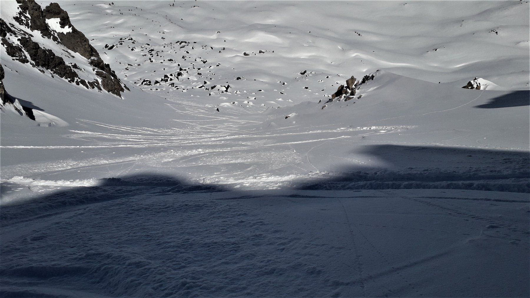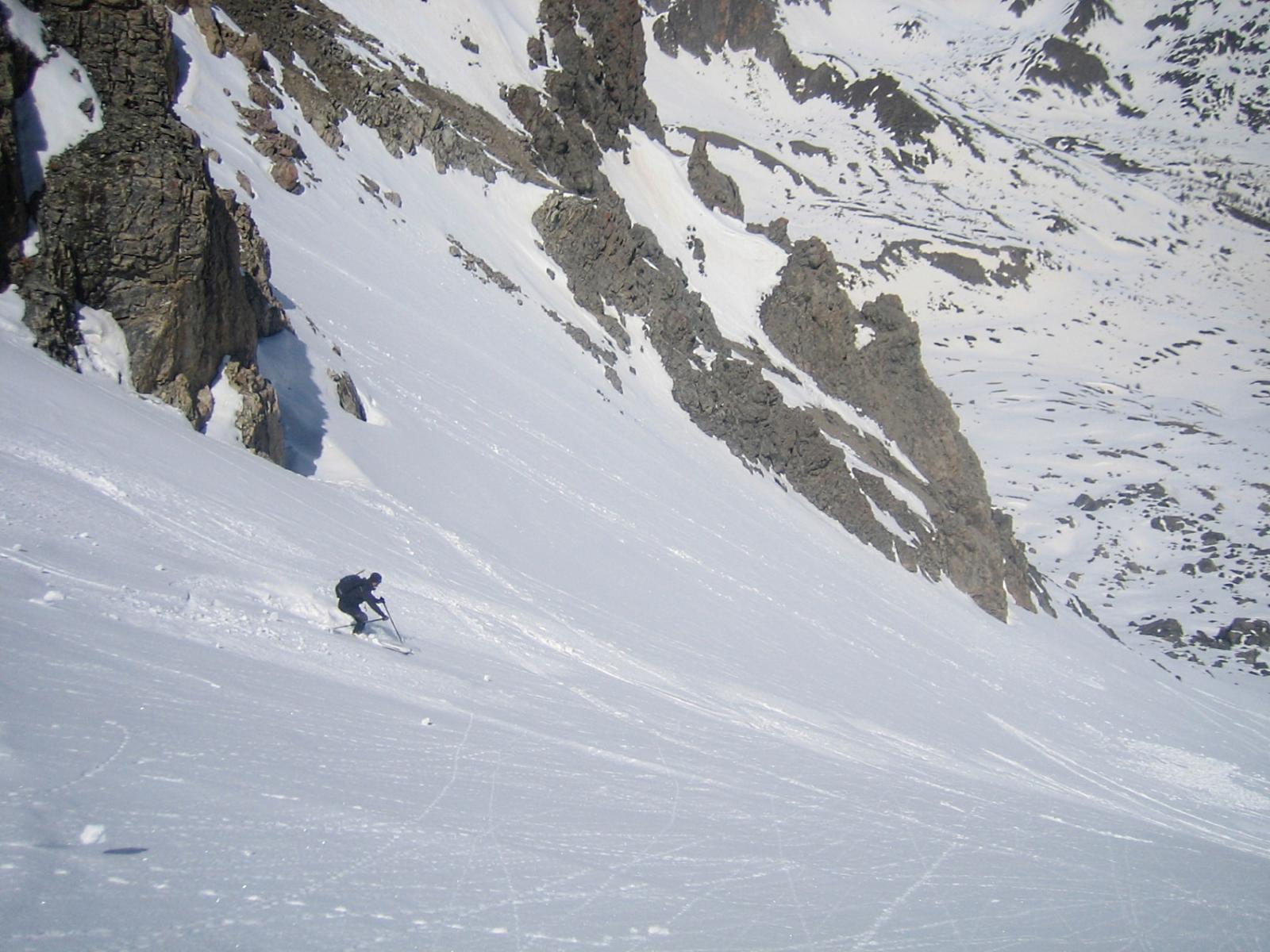 Da qui, direzione nord, diretta nel bosco. Bella discesa ripida in bosco ben sciabile.